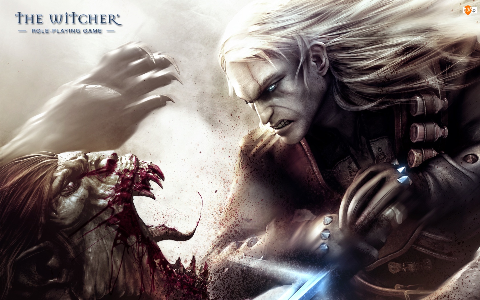 potwór, zęby, The Witcher, krew, mężczyzna, k�