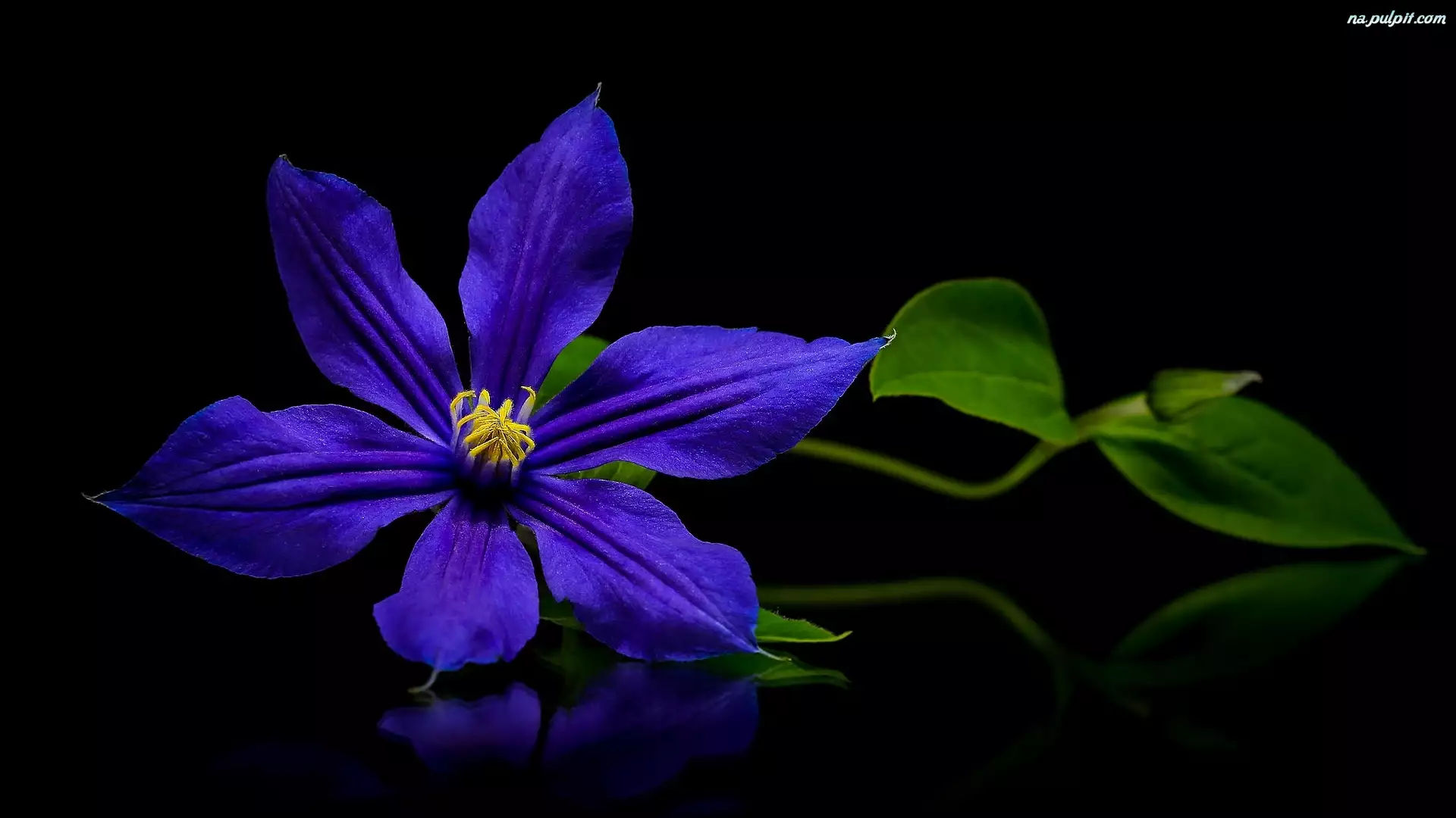 Ciemne tło, Kwiat, Powojnik, Niebieski