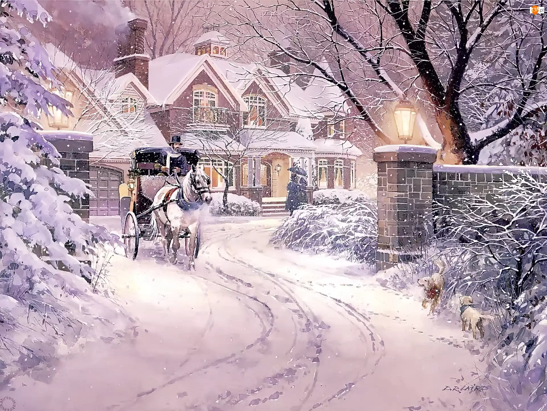 Zima, Powóz, Widoczek, Zimowy, Dom