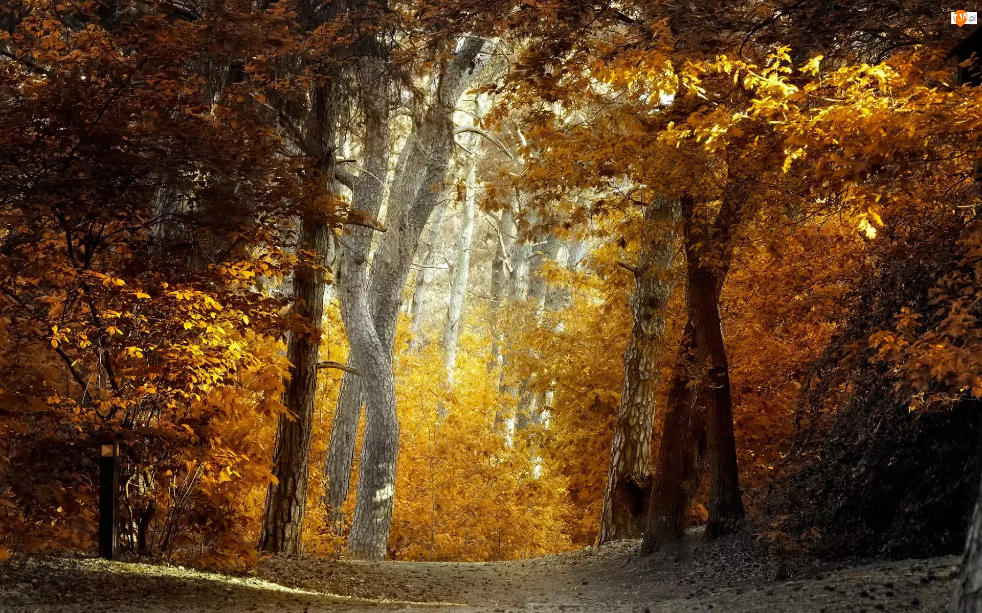 Pożółkłe, Ścieżka, Las, Jesień, Drzewa