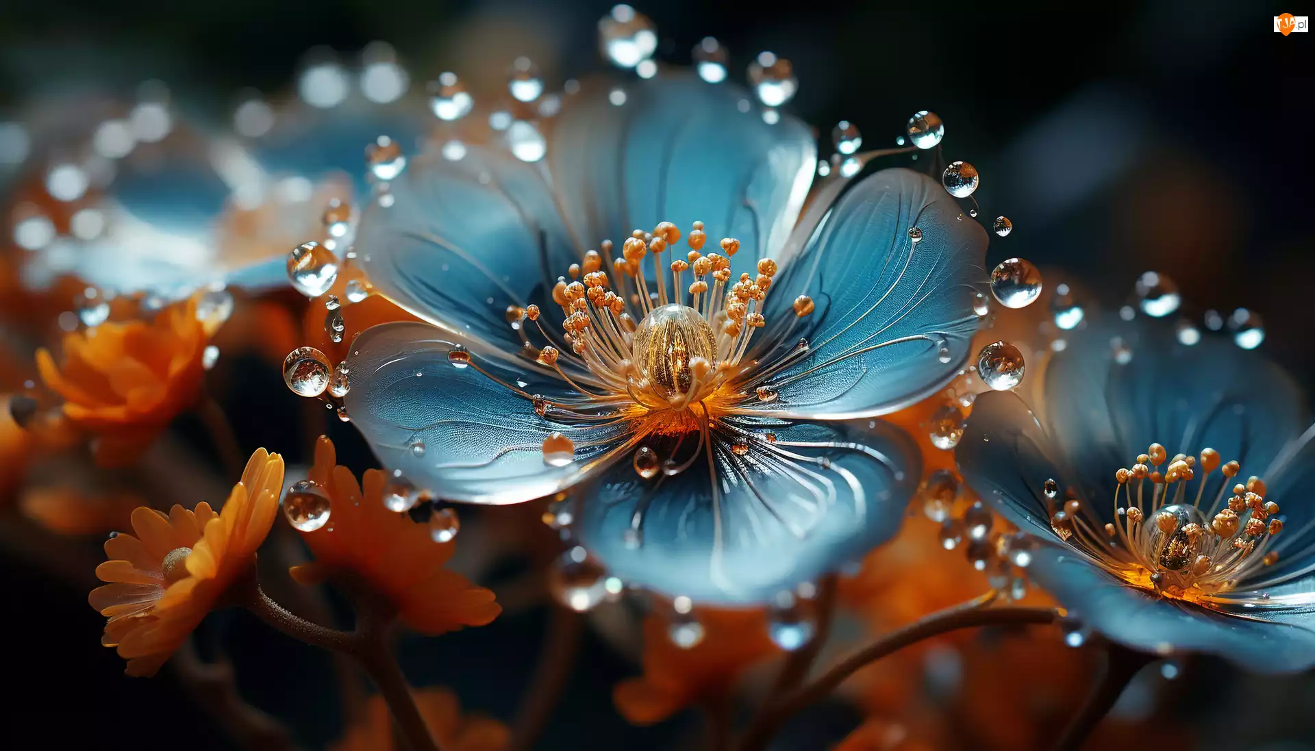Pręciki, Grafika, Kwiaty, Niebieskie, Krople
