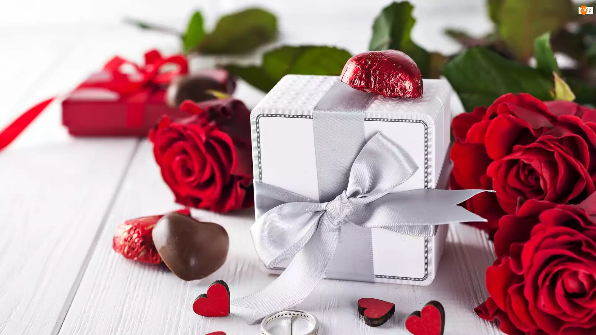 Czekoladki, Walentynki, Prezent, Róża, Serca