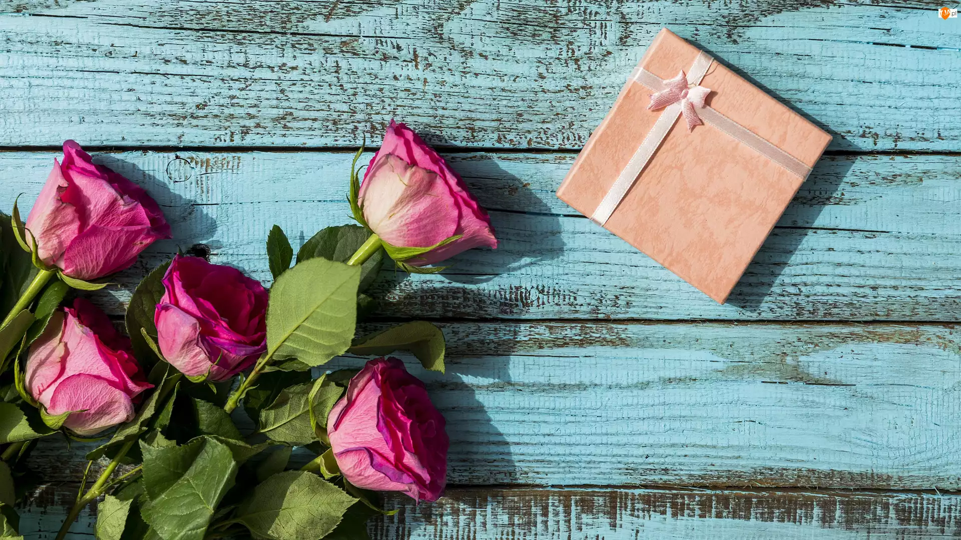 Prezent, Deski, Róże, Różowe, Niebieskie