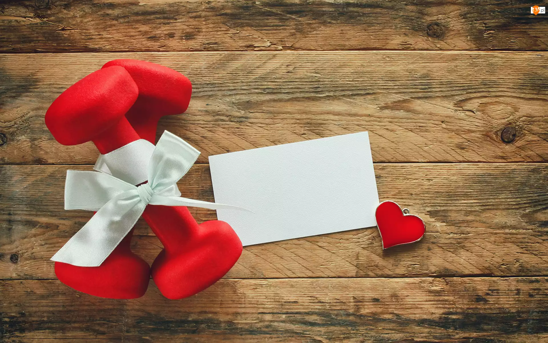 Serce, Walentynki, Wstążka, Deski, Ciężarki, Karteczka