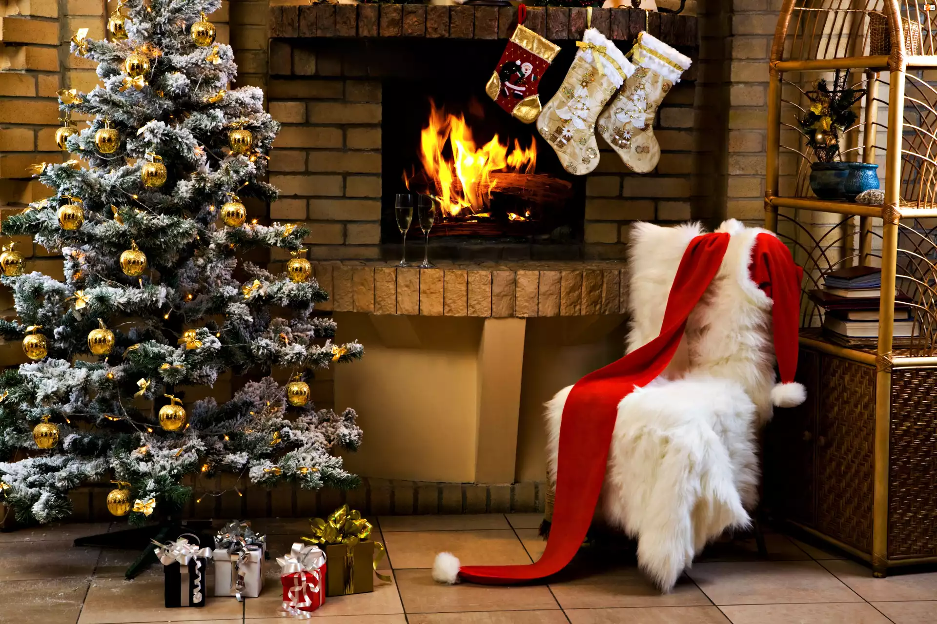 Prezenty, Choinka, Krzesło, Skarpety, Kominek