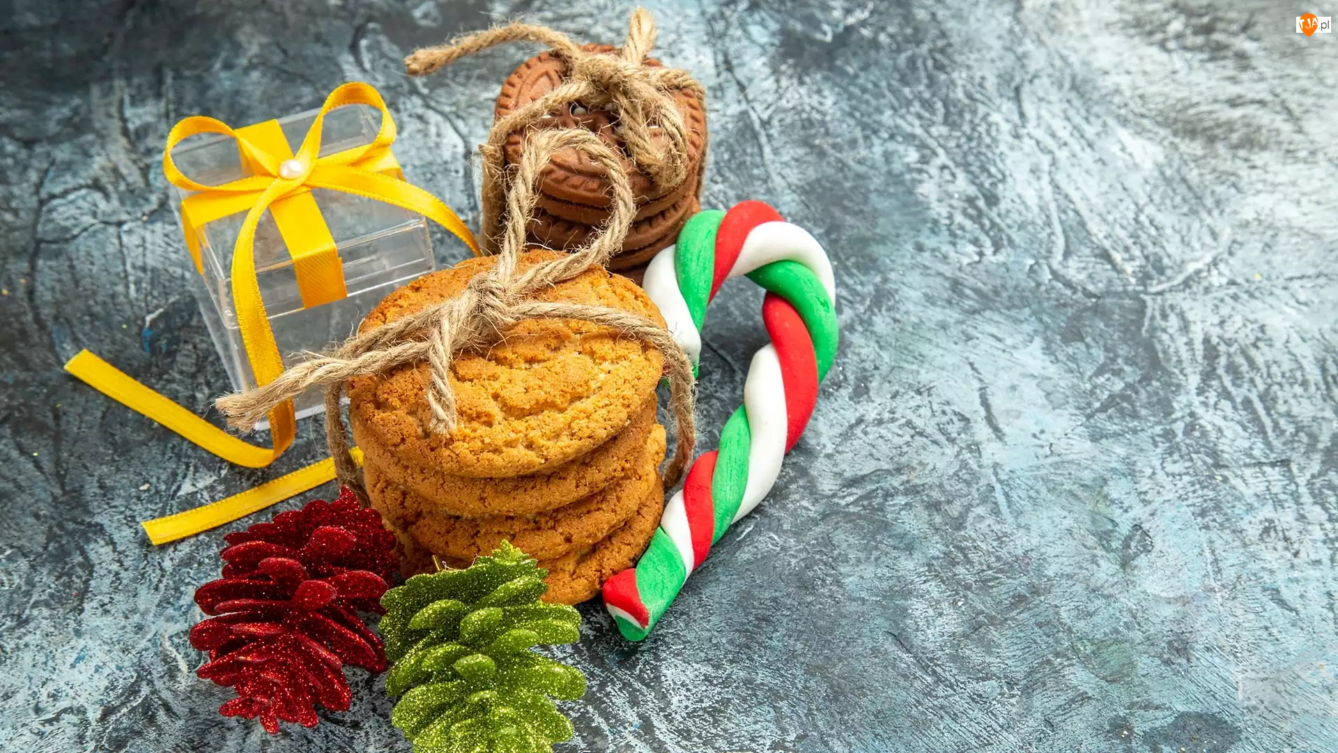 Szyszki, Lizak, Kompozycja, Ciasteczka, Tło, Szare, Prezencik
