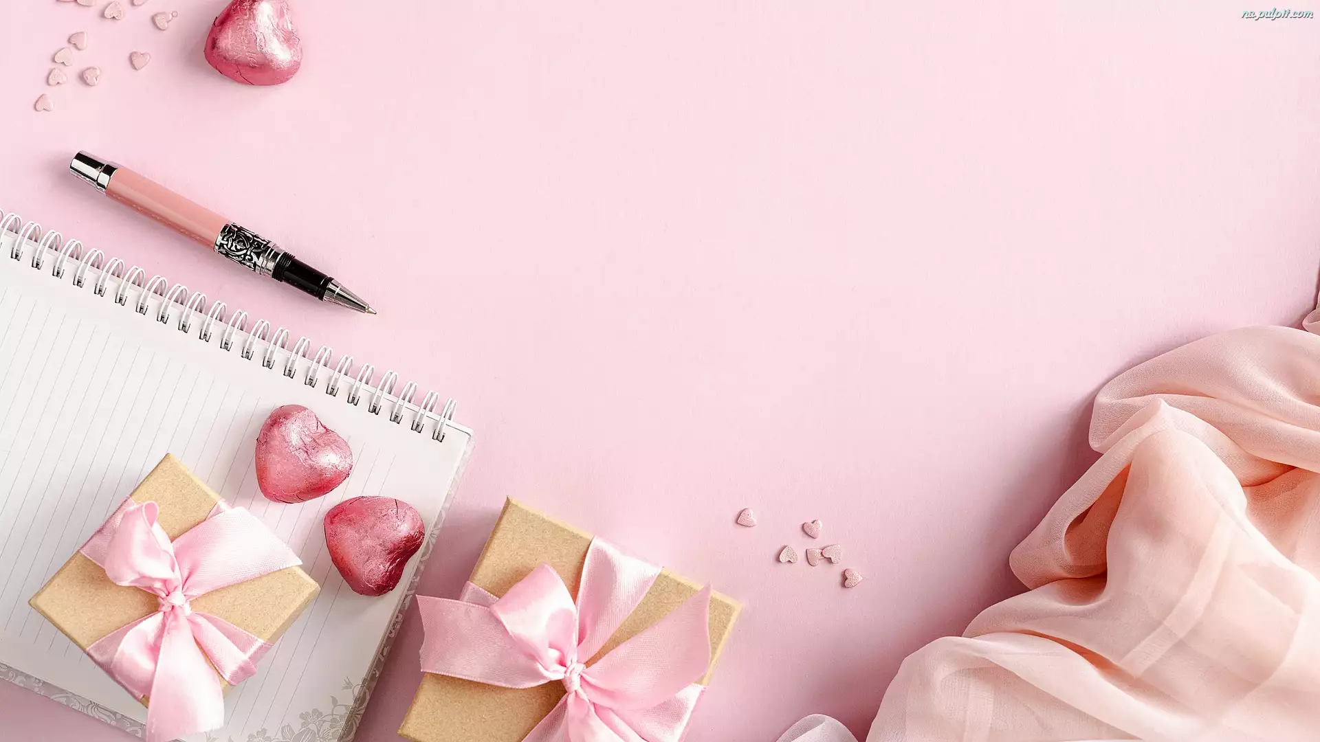Długopis, Prezenty, Tło, Notes, Różowe, Materiał, Pralinki