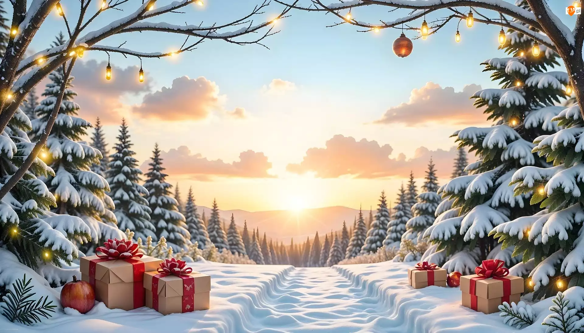 Prezenty pod ośnieżonymi i rozświetlonymiświat