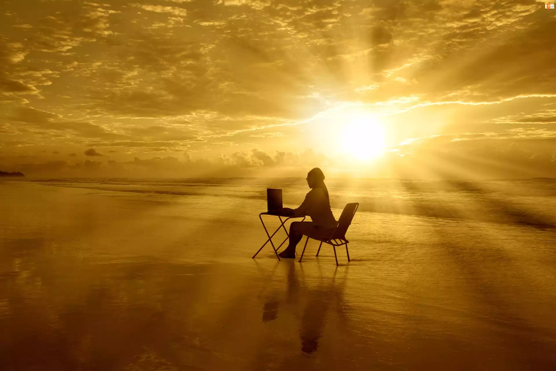 Promienie, Plaża, Zachód, Kobieta, Słońca, Mor