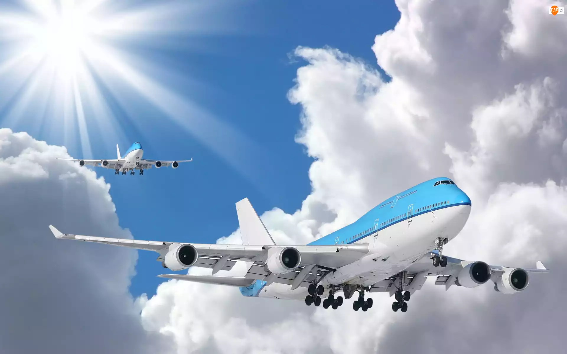 Promienie, Samoloty, Słońca, Chmury