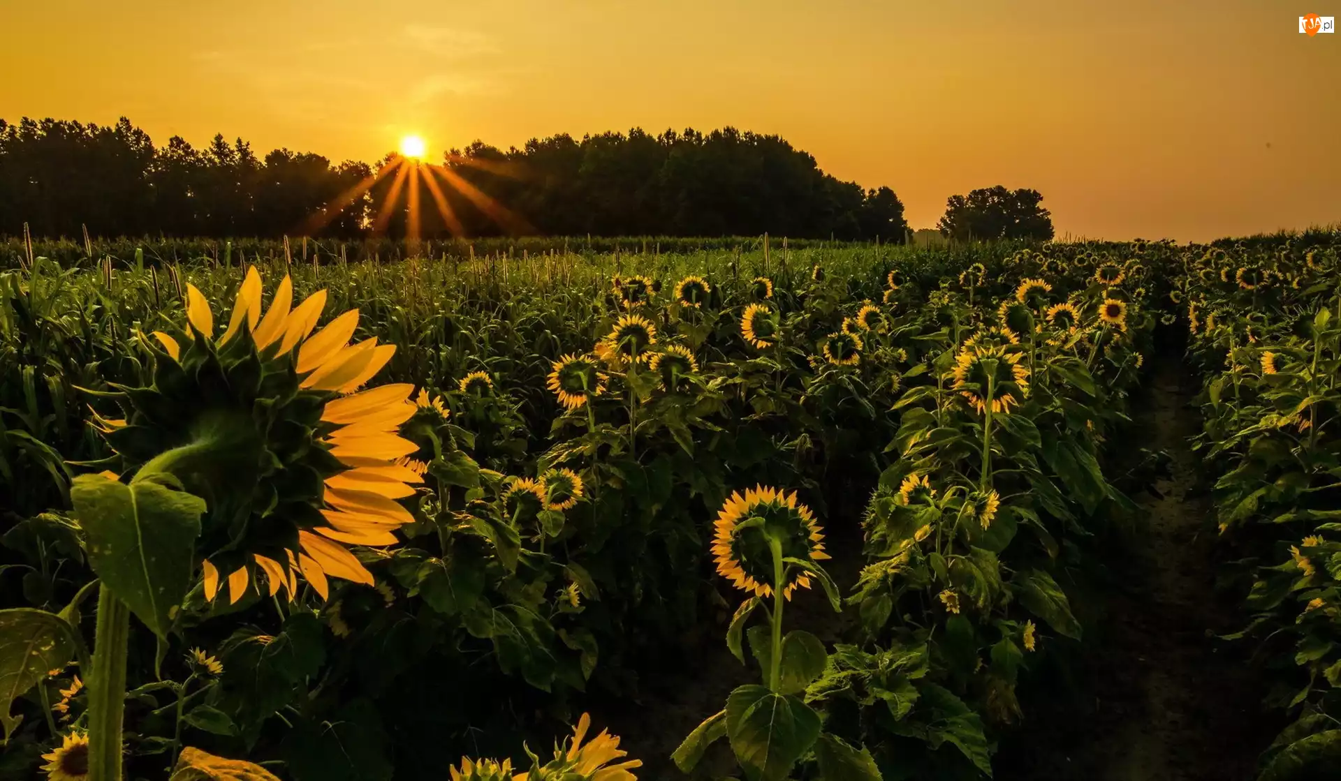 Promienie, Słoneczniki, Zachód, Uprawa, Słońca, Las