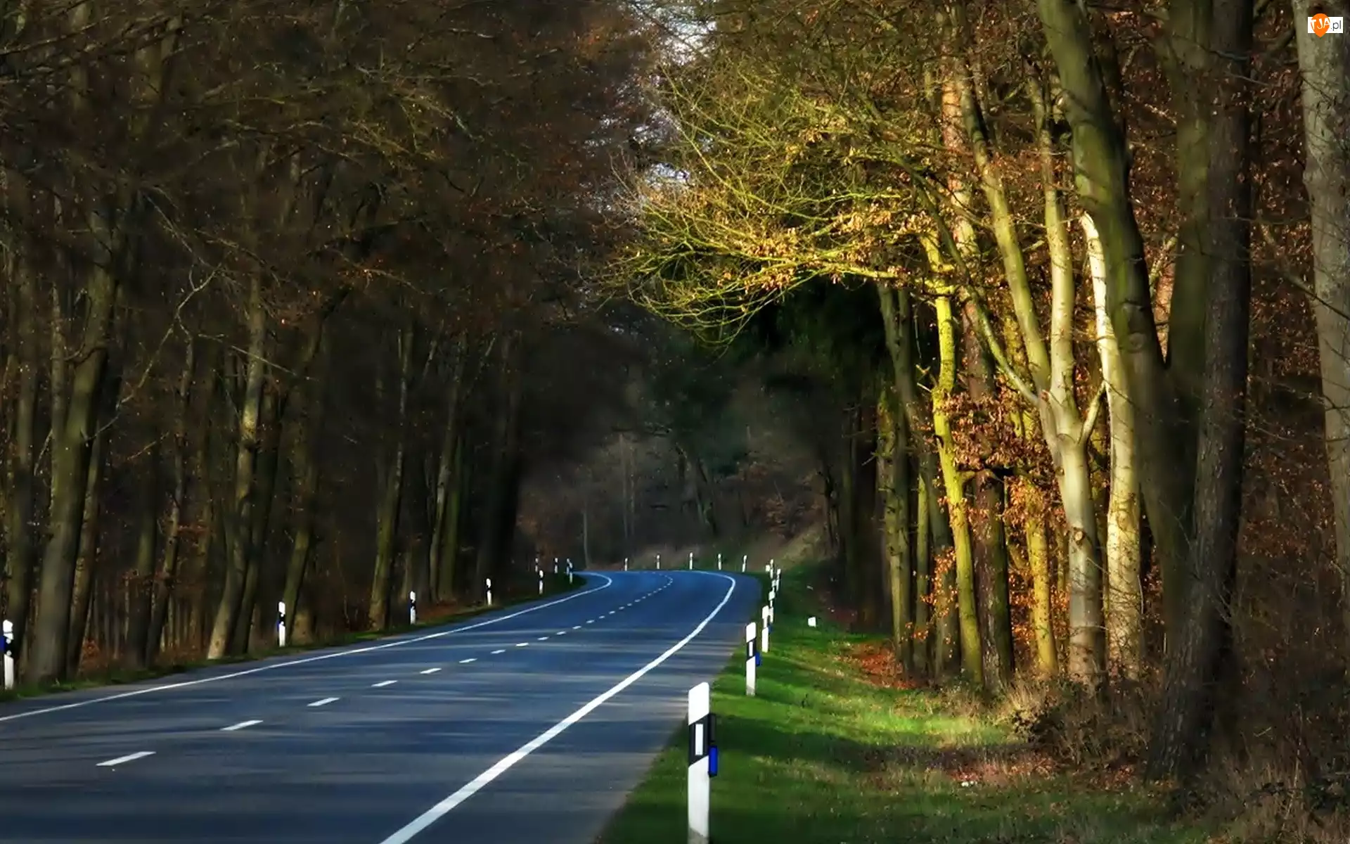 Przebijające Światło, Droga, Las, Zakręt, Drze