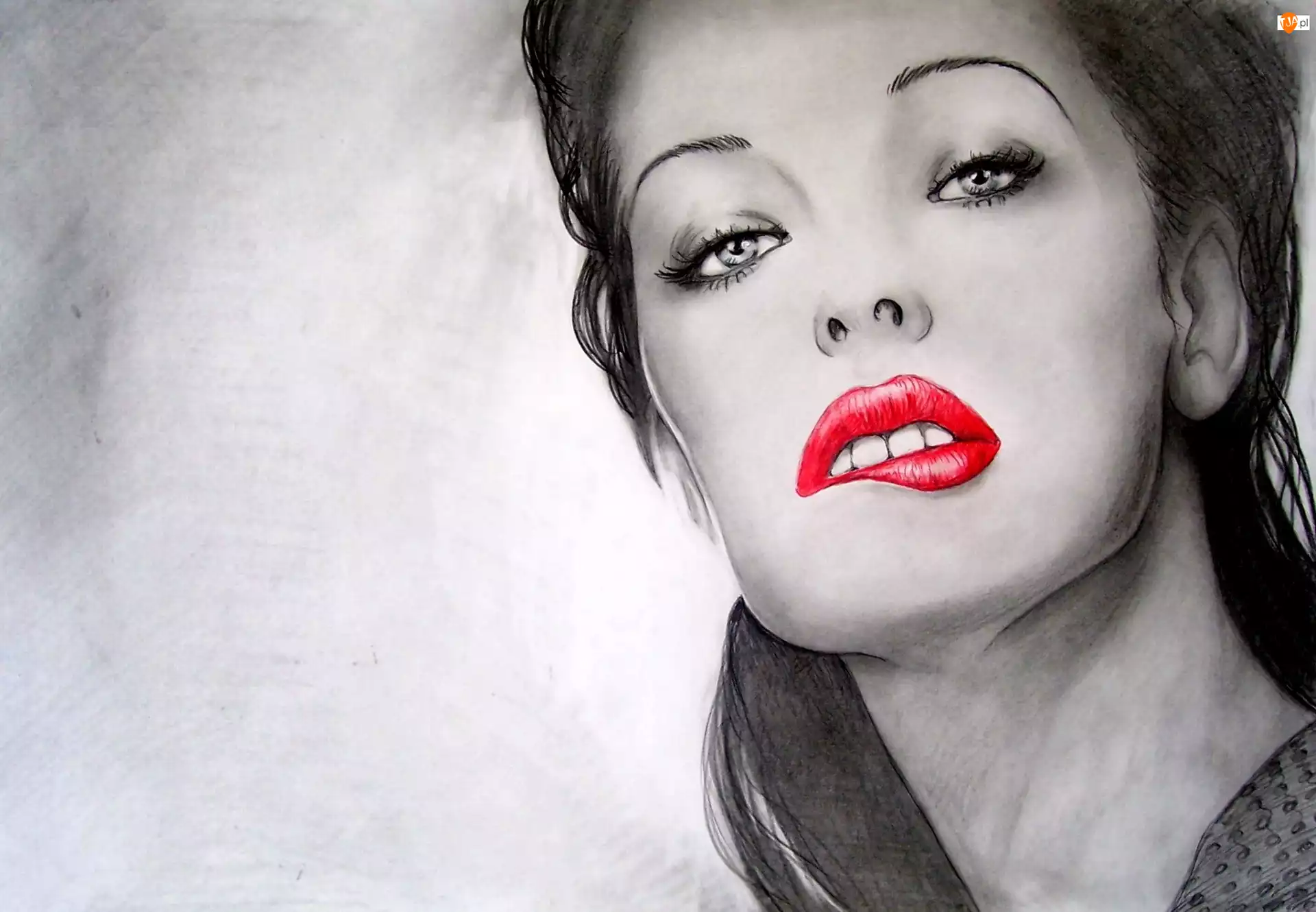 Czerwone, Kobieta, Rysunek, Usta, Aktorka, Twarz, Spojrzenie, Milla Jovovich