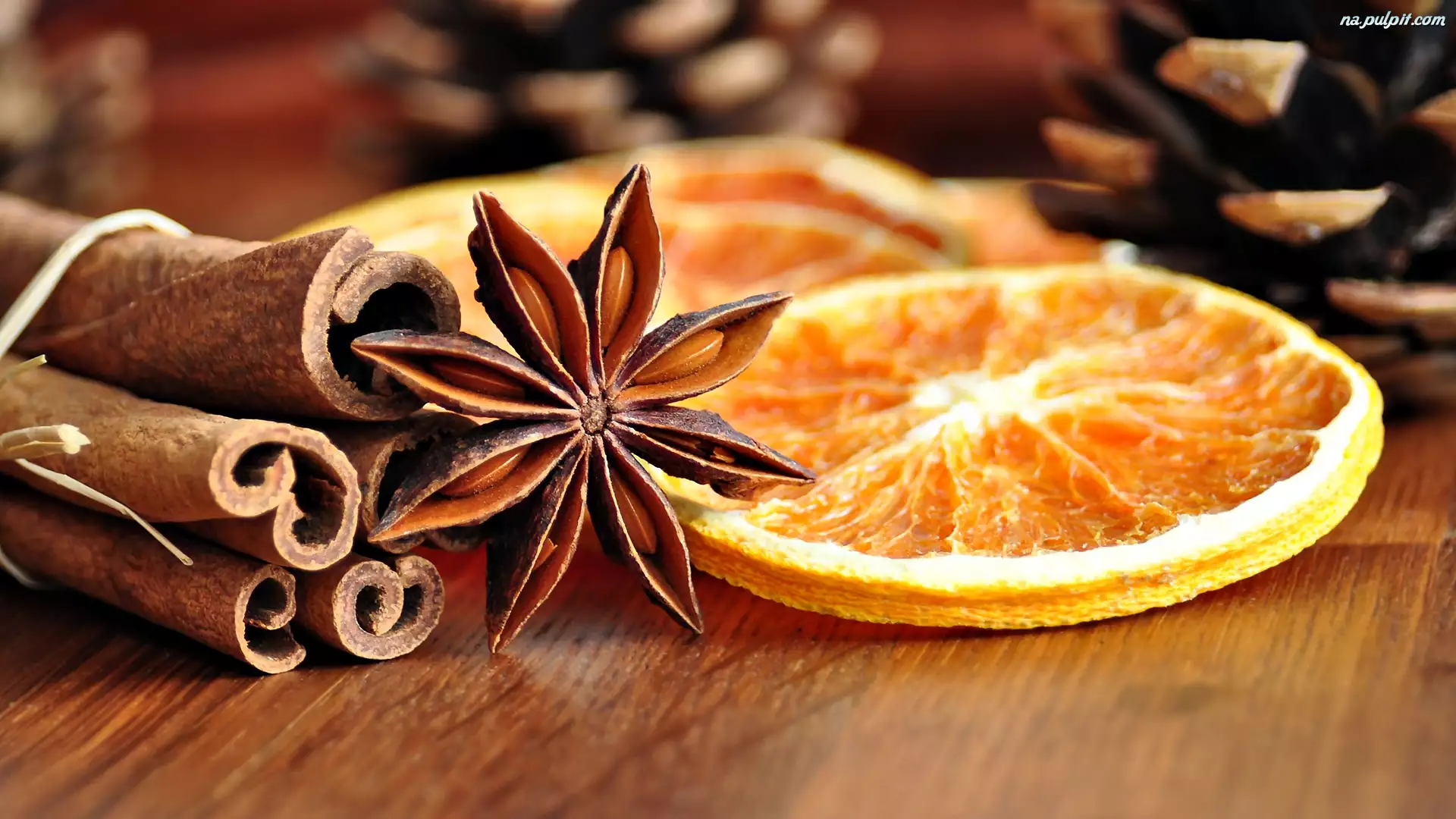 Anyż gwiaździsty, Pomarańczy, Cynamon, Przyprawy, Plasterek