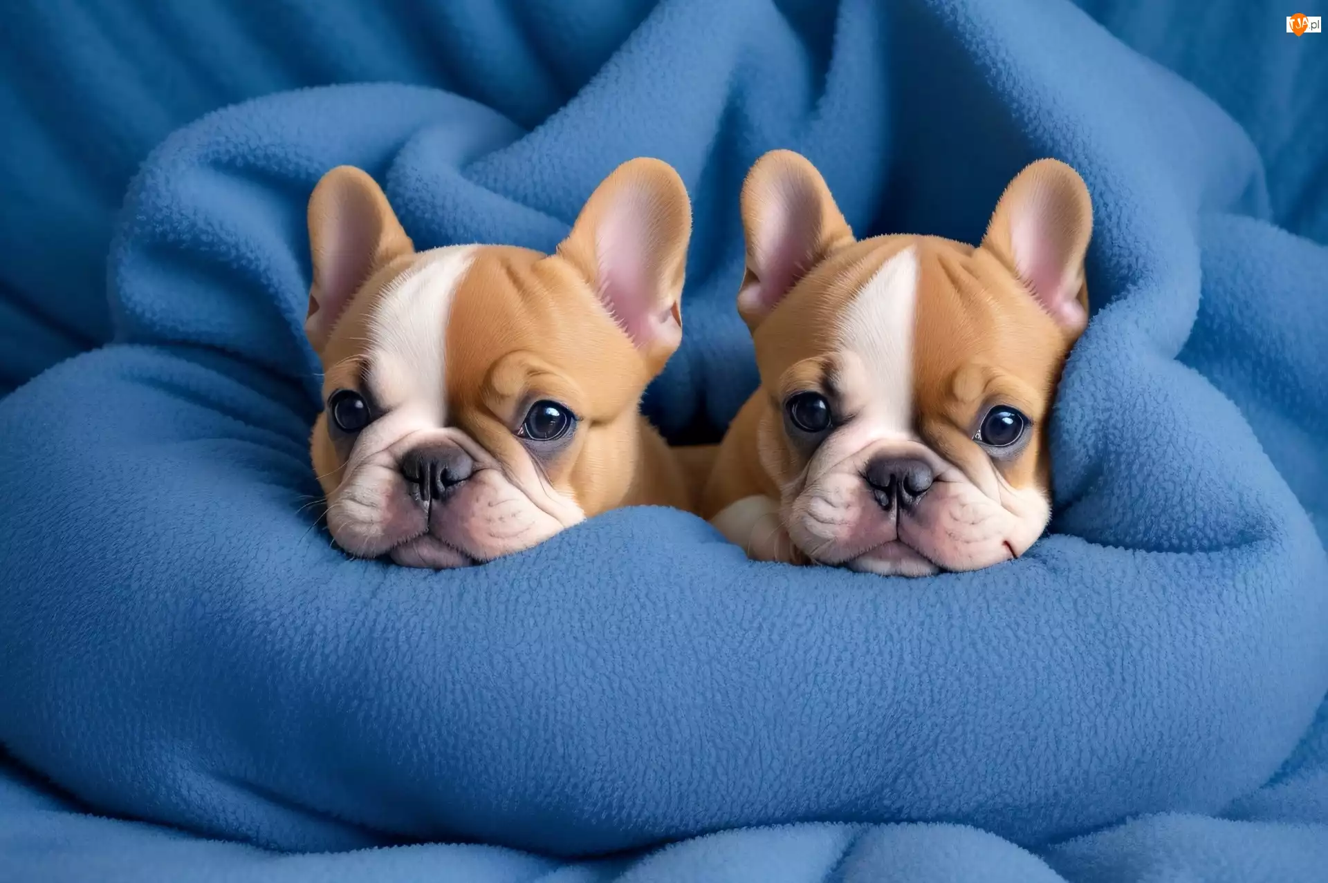 Psy, Buldog francuski, Pluszowy, Grafika, Szczeniaki, Koc