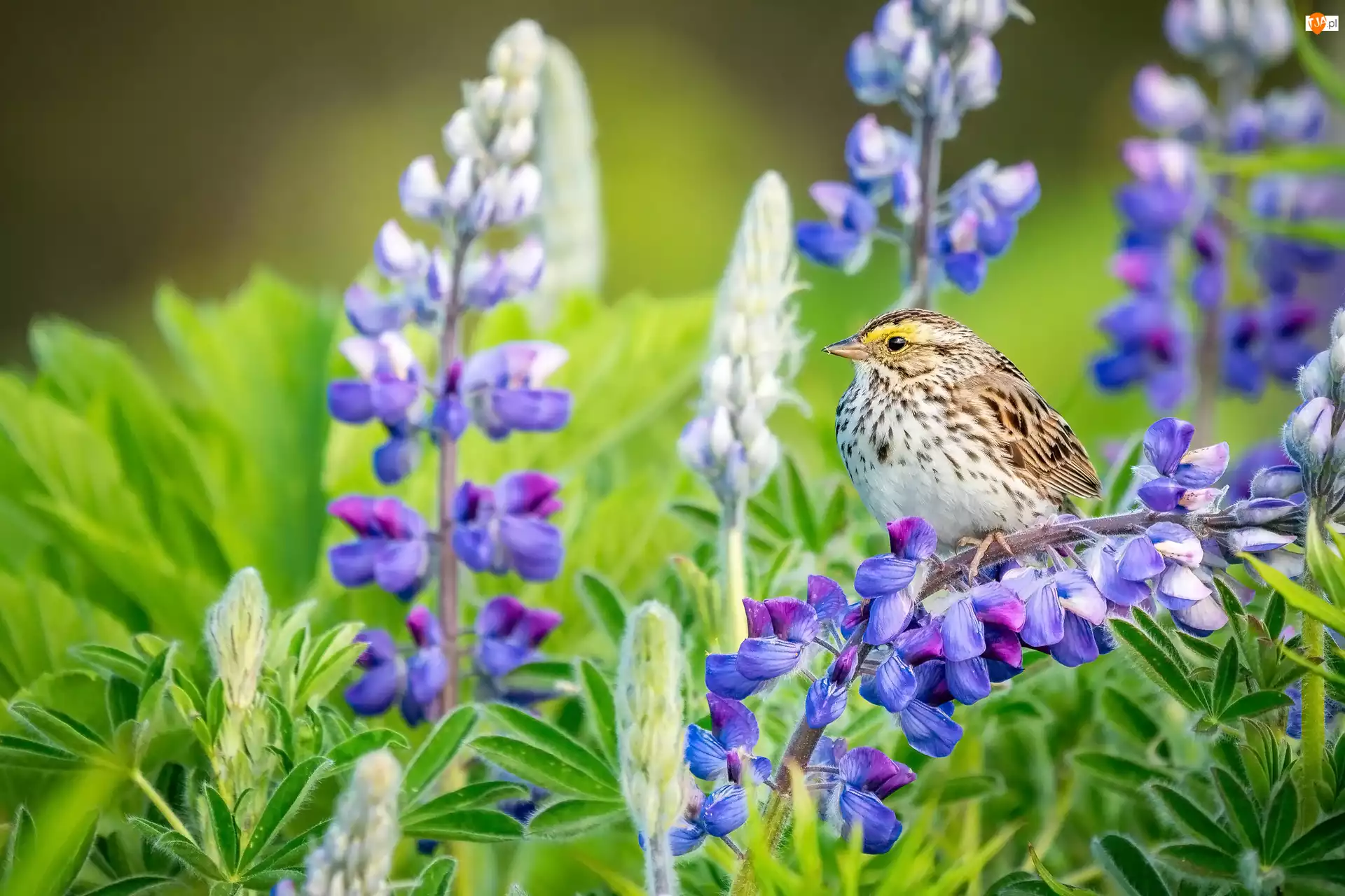 Ptak, Kwiaty, Łubin