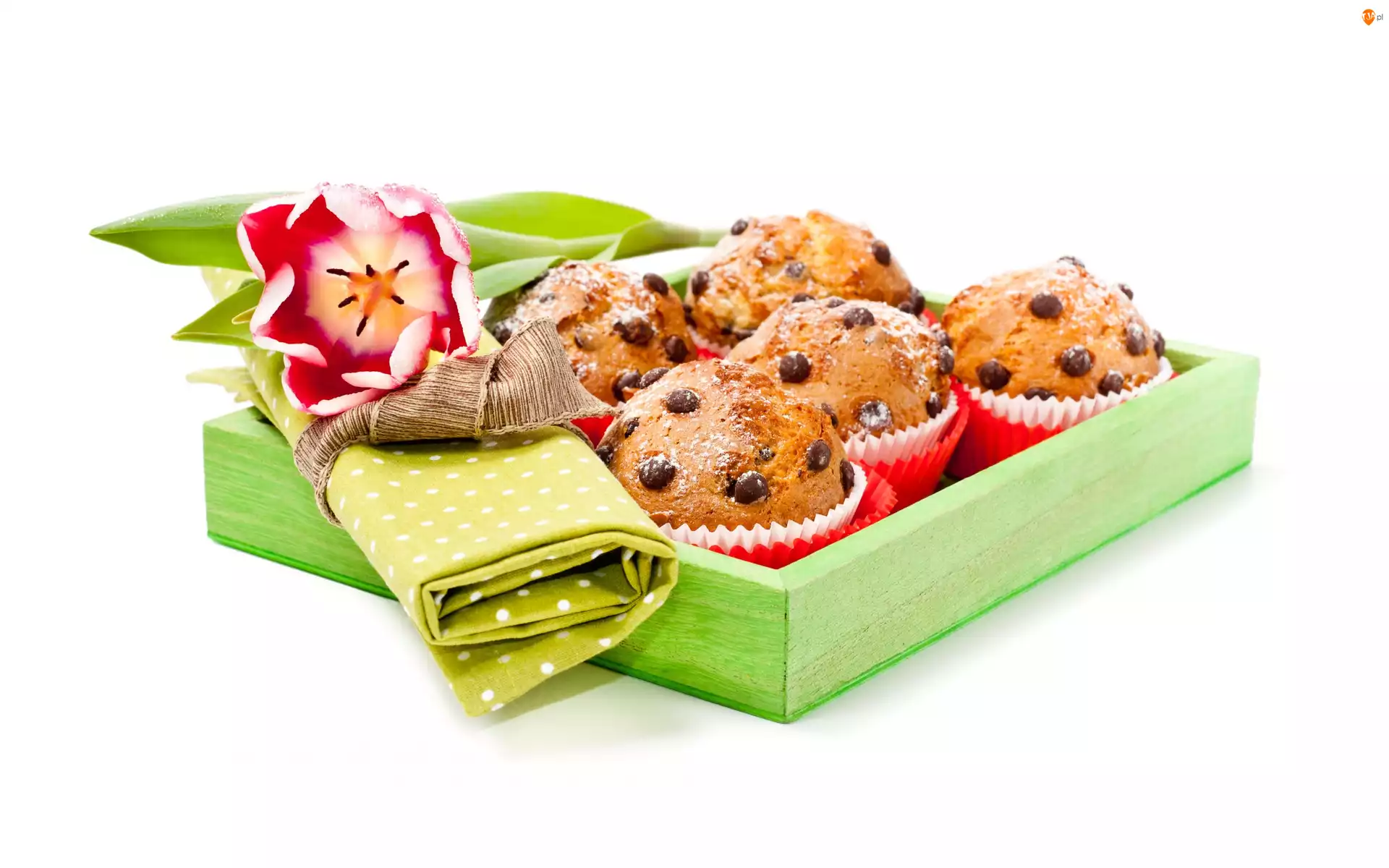 Pudełko, Babeczki, Tulipan, Zielone