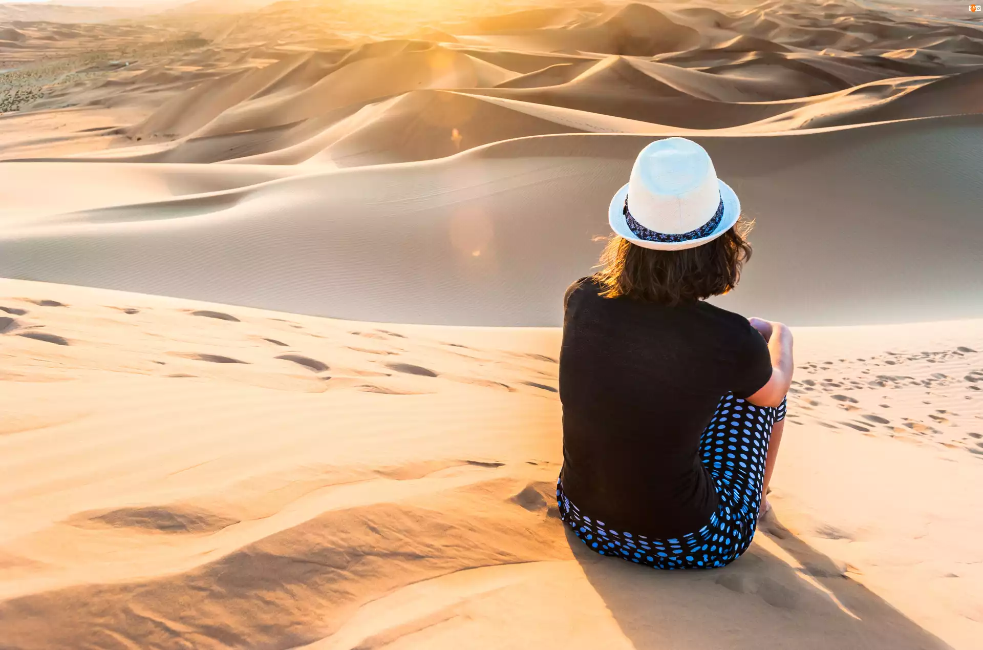 Pustynia, Dziewczyna, Piasek, Wydmy, Promienie