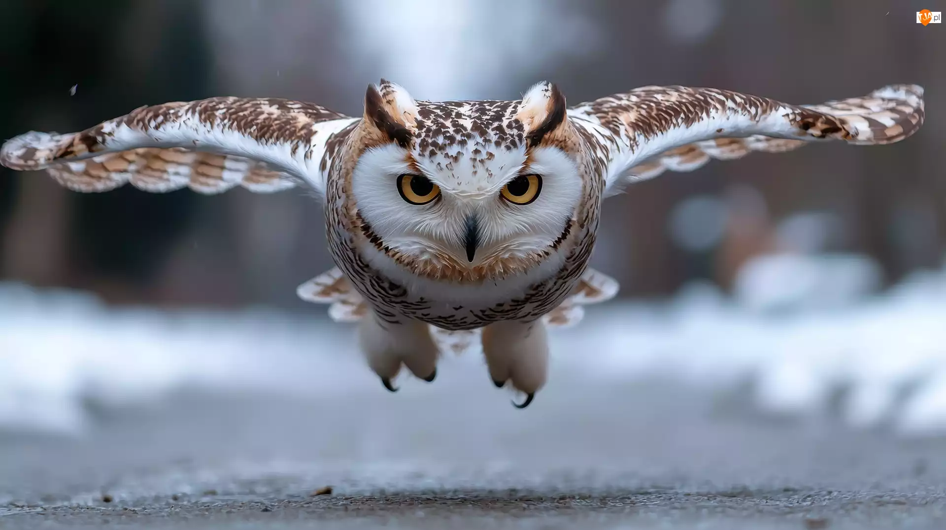 Puszczyk, Sowa, Lot, Grafika, Ptak, Zima