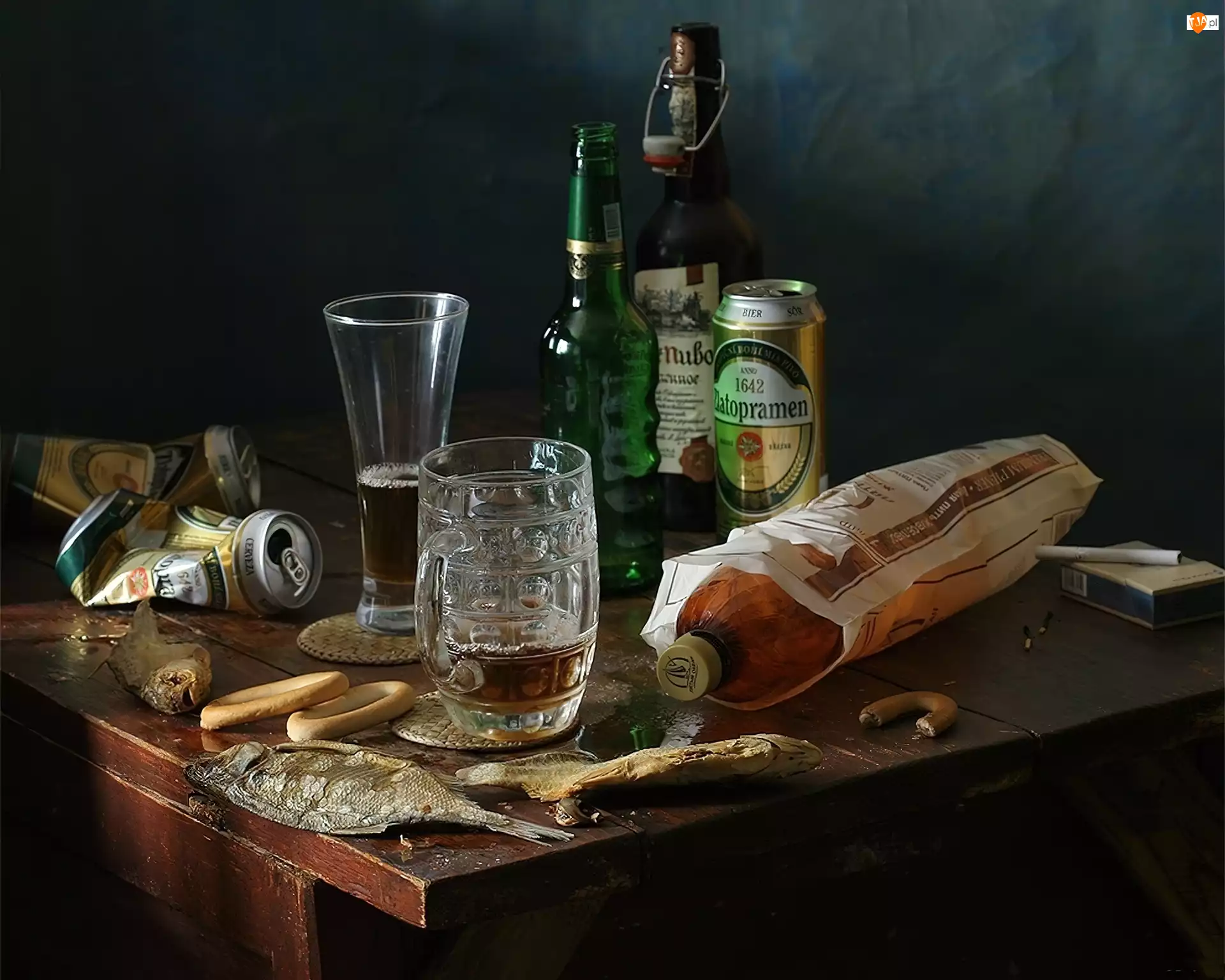 Puszki, Suszone, Butelki, Ryby, Alkohol, Piwo