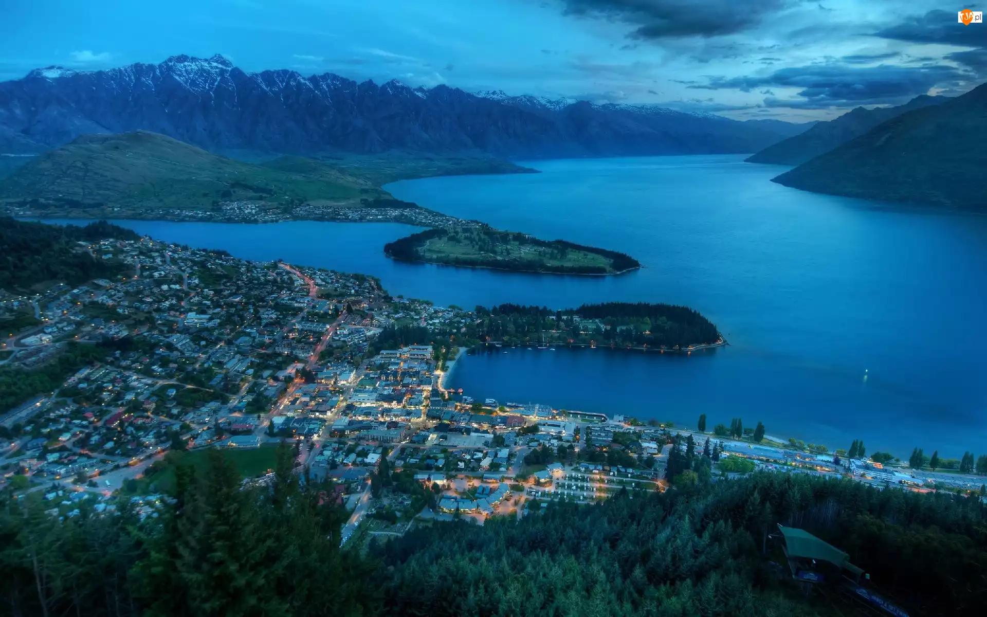 Queenstown, Nocą, Nowa Zelandia, Panorama