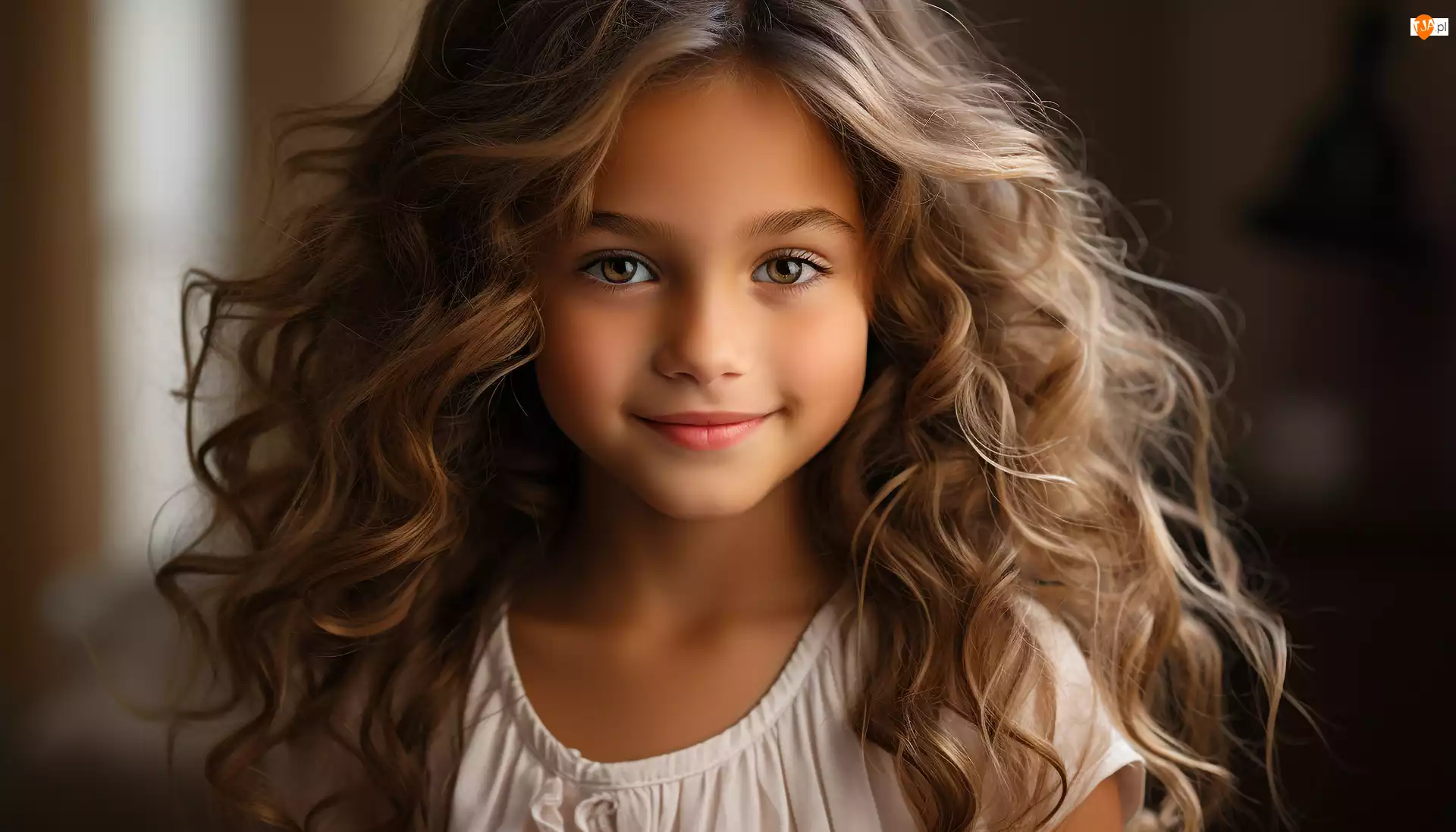 Radosna, Dziewczynka, Kobieta, Dziecko, Włosy 2D, Kręcone, Długie