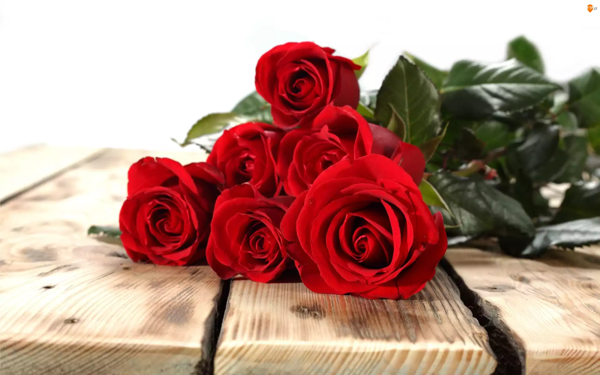 Trzy czerwone róże na deskach