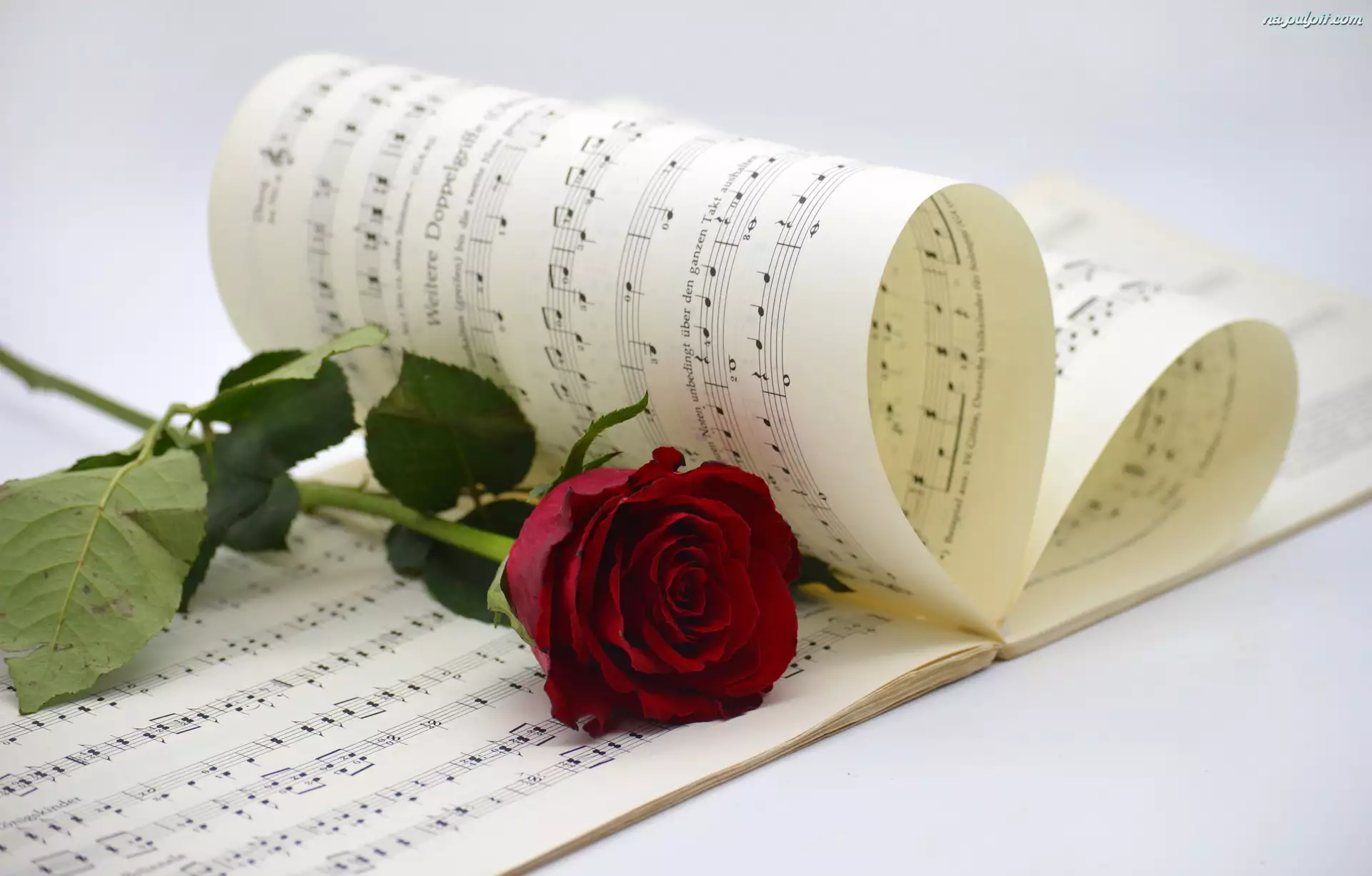 Róża, Czerwona, Muzyka, Kwiat, Melodia, Zapis, Nuty