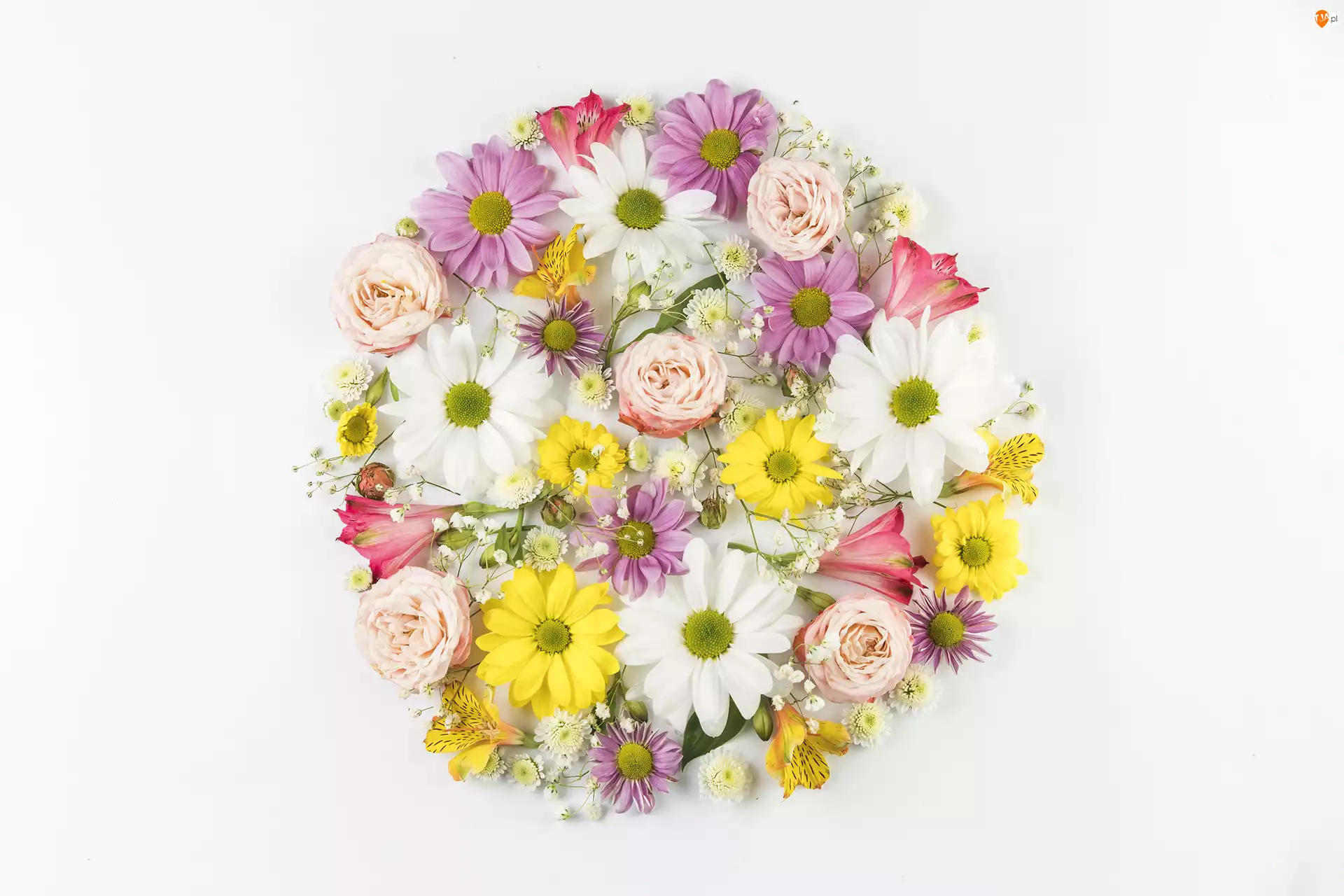 Róże, Kwiaty, Chryzantemy, Alstremerie