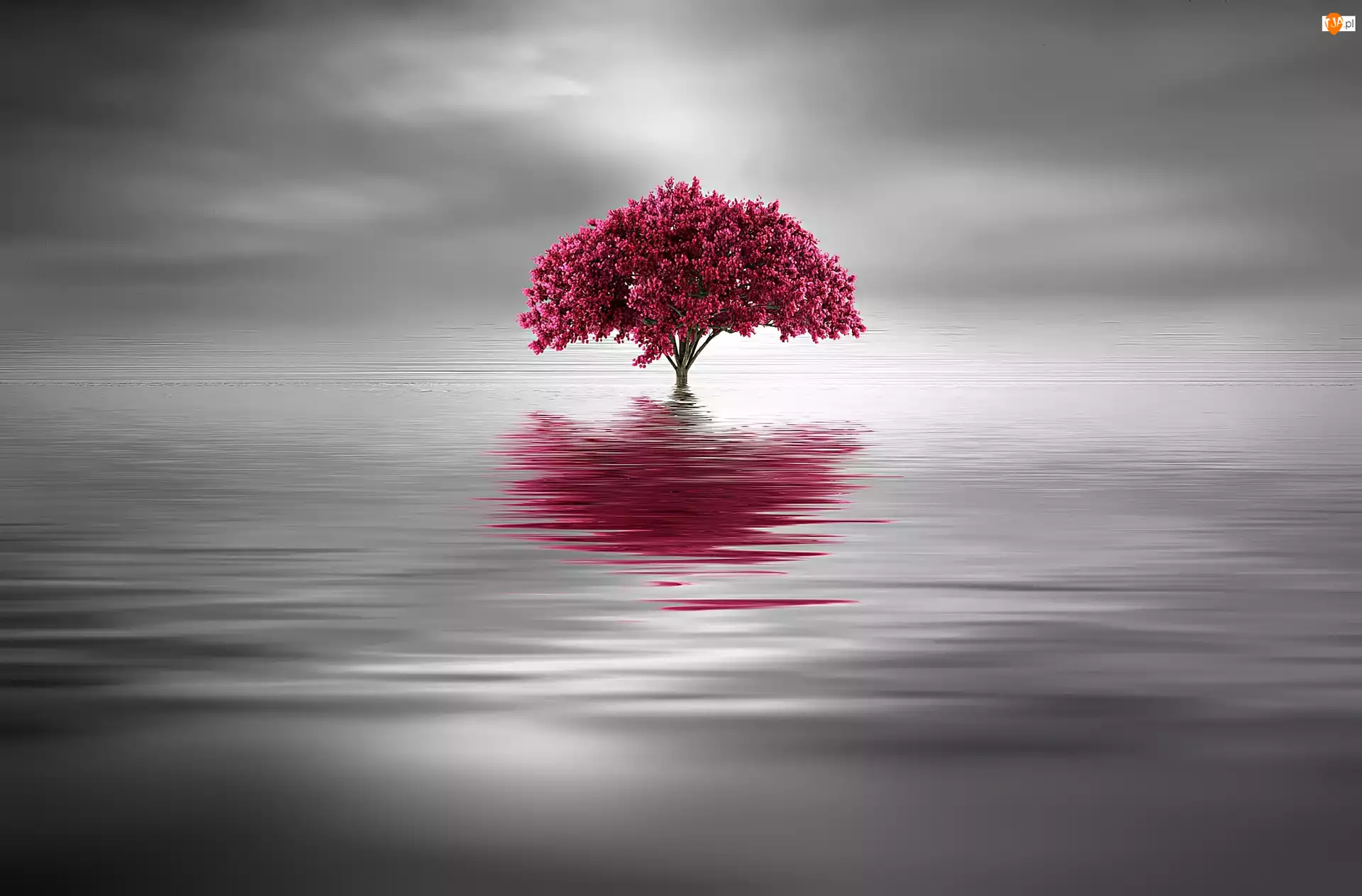 Różowe, Grafik, Drzewo