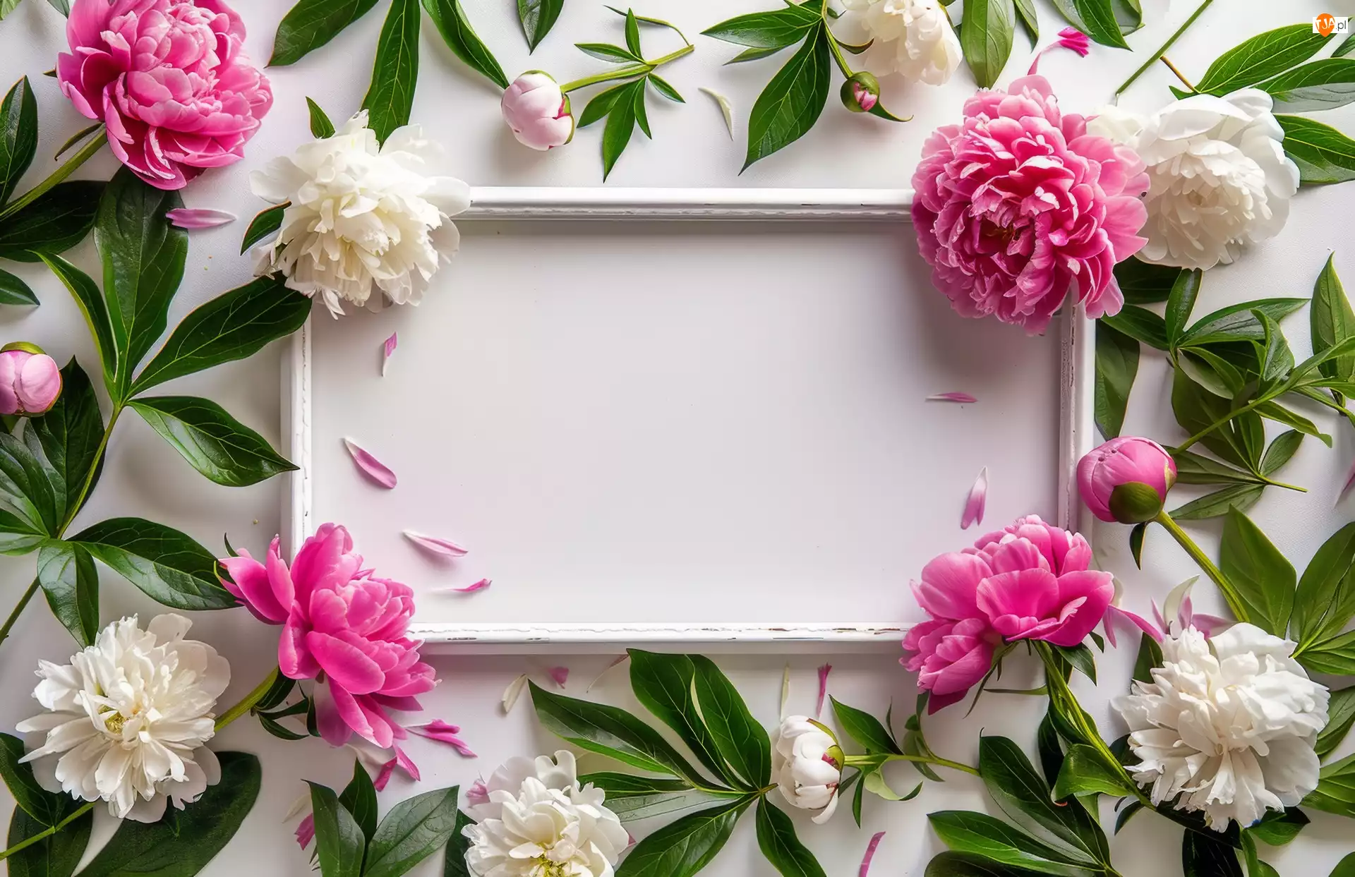 Ramka, Białe, Różowe, Piwonie