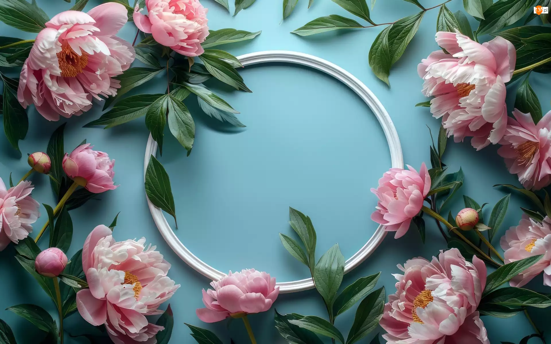 Ramka, Kwiaty, Piwonie, Liście