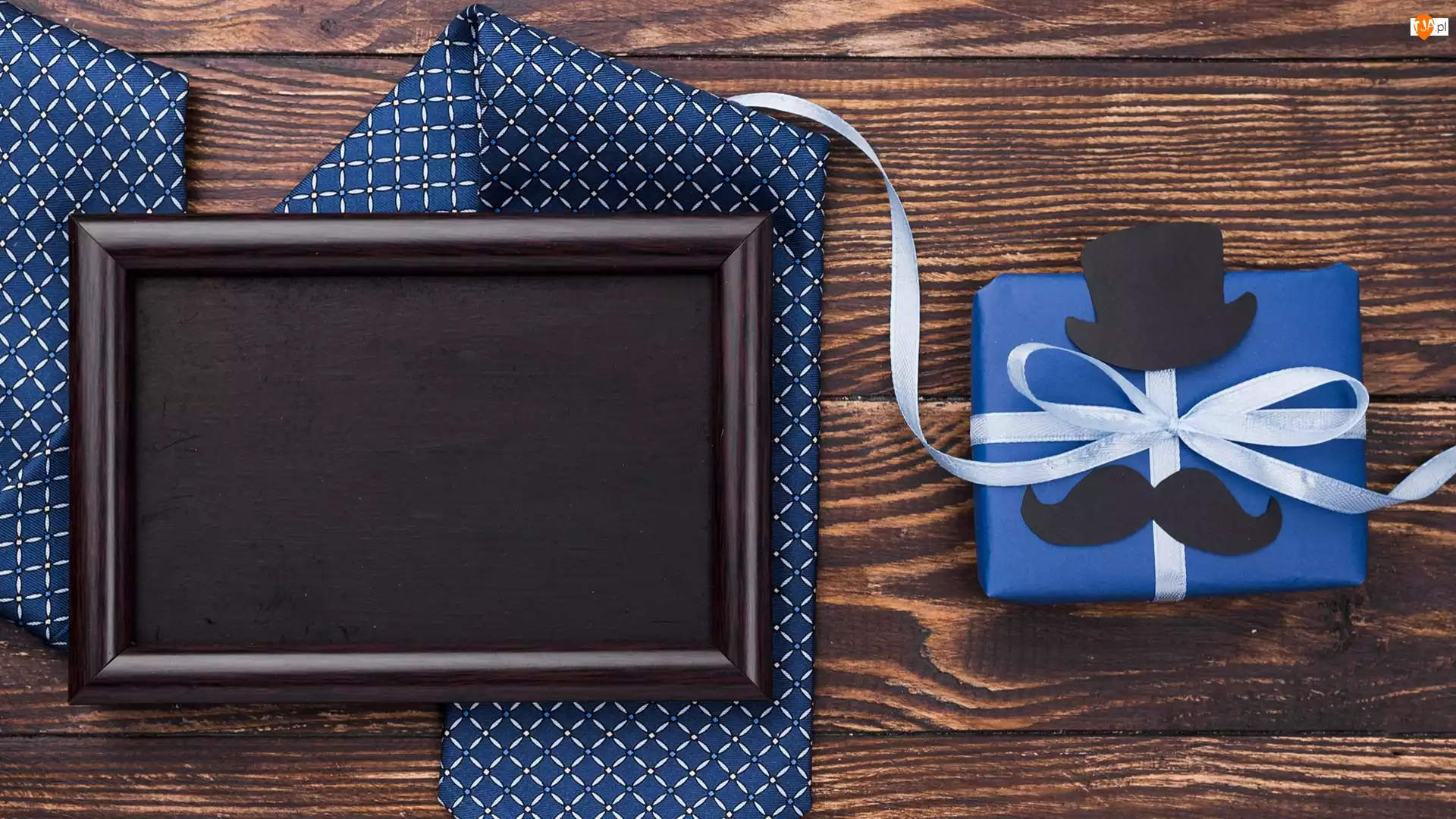 Ramka na krawacie obok prezentu dla taty