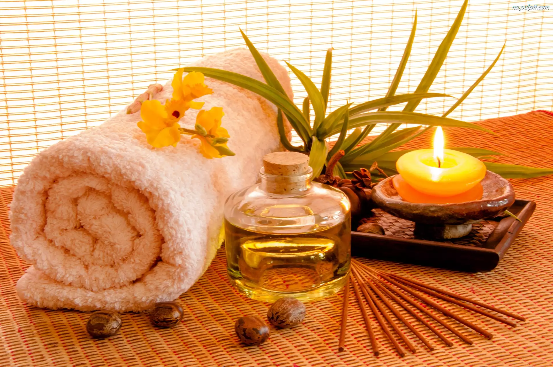 Ręcznik, Świeca, SPA, Kompozycja, Olejek