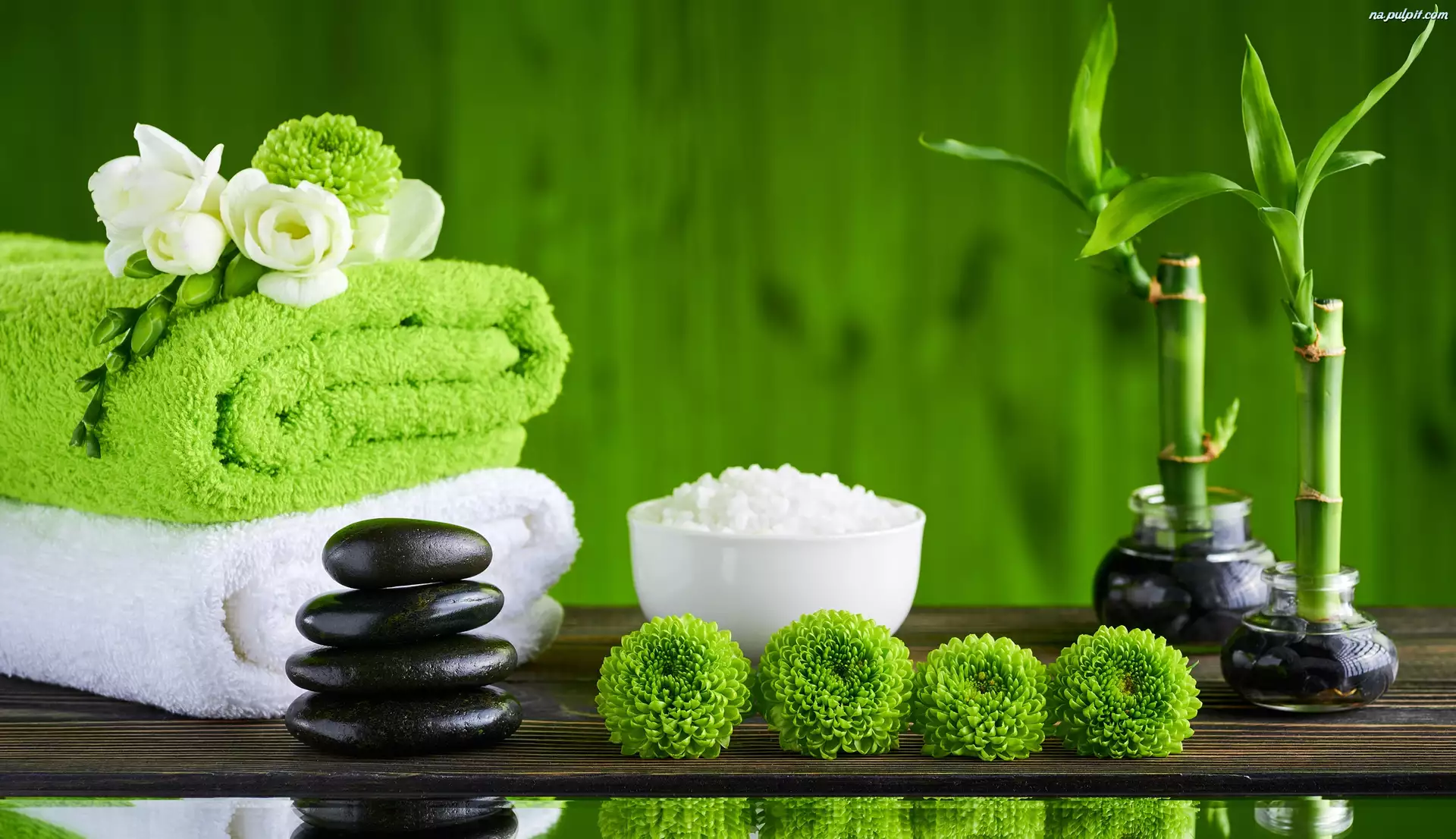 Bambus, SPA, Kamienie, Ręczniki, Zieleń