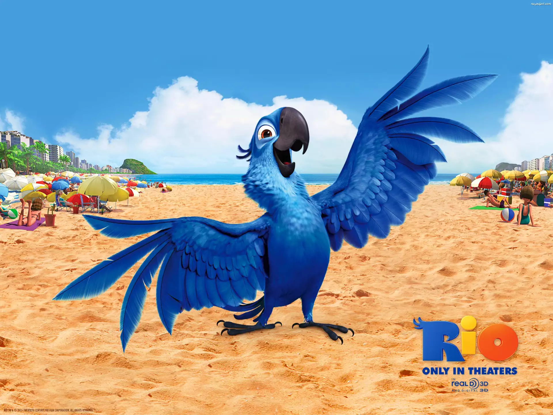Rio, Plaża, Niebieska, Papuga
