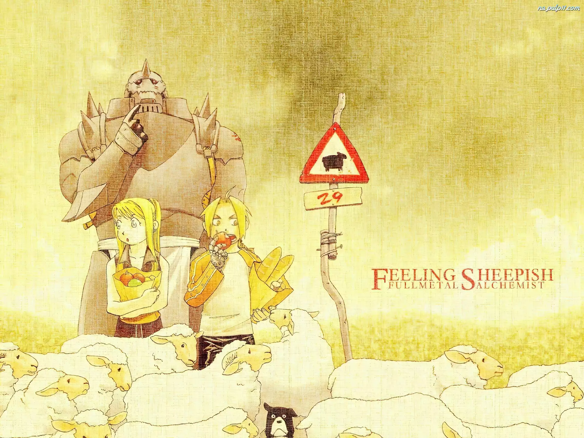 znak, robot, owce, ludzie, Full Metal Alchemist