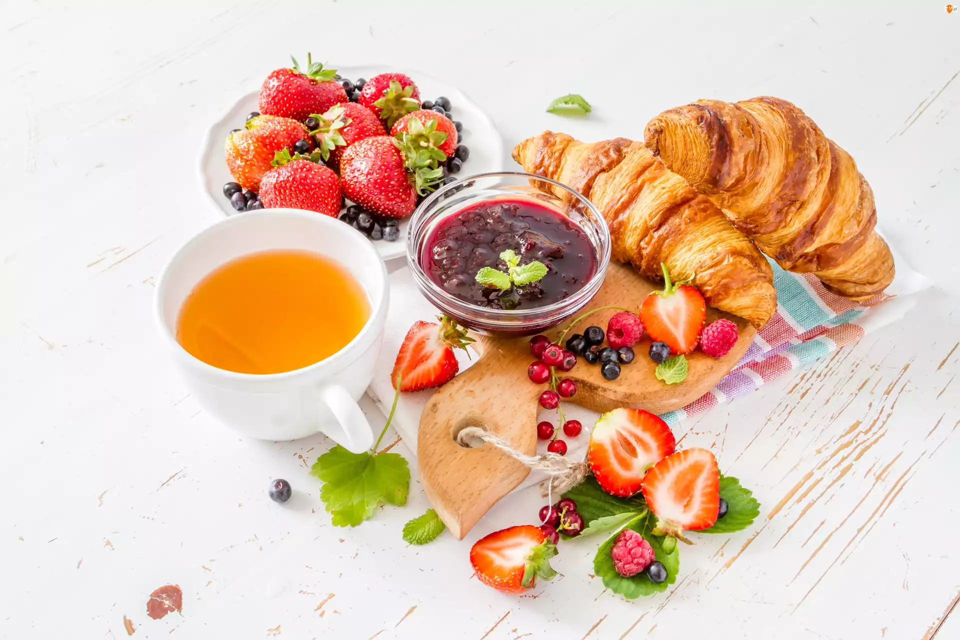 Dżem, Śniadanie, Owoce, Herbata, Rogale