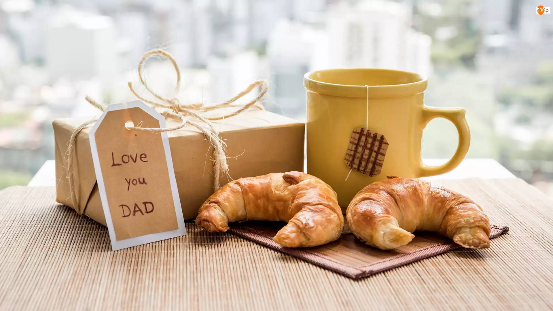 Rogaliki i kubek obok prezentu dla taty