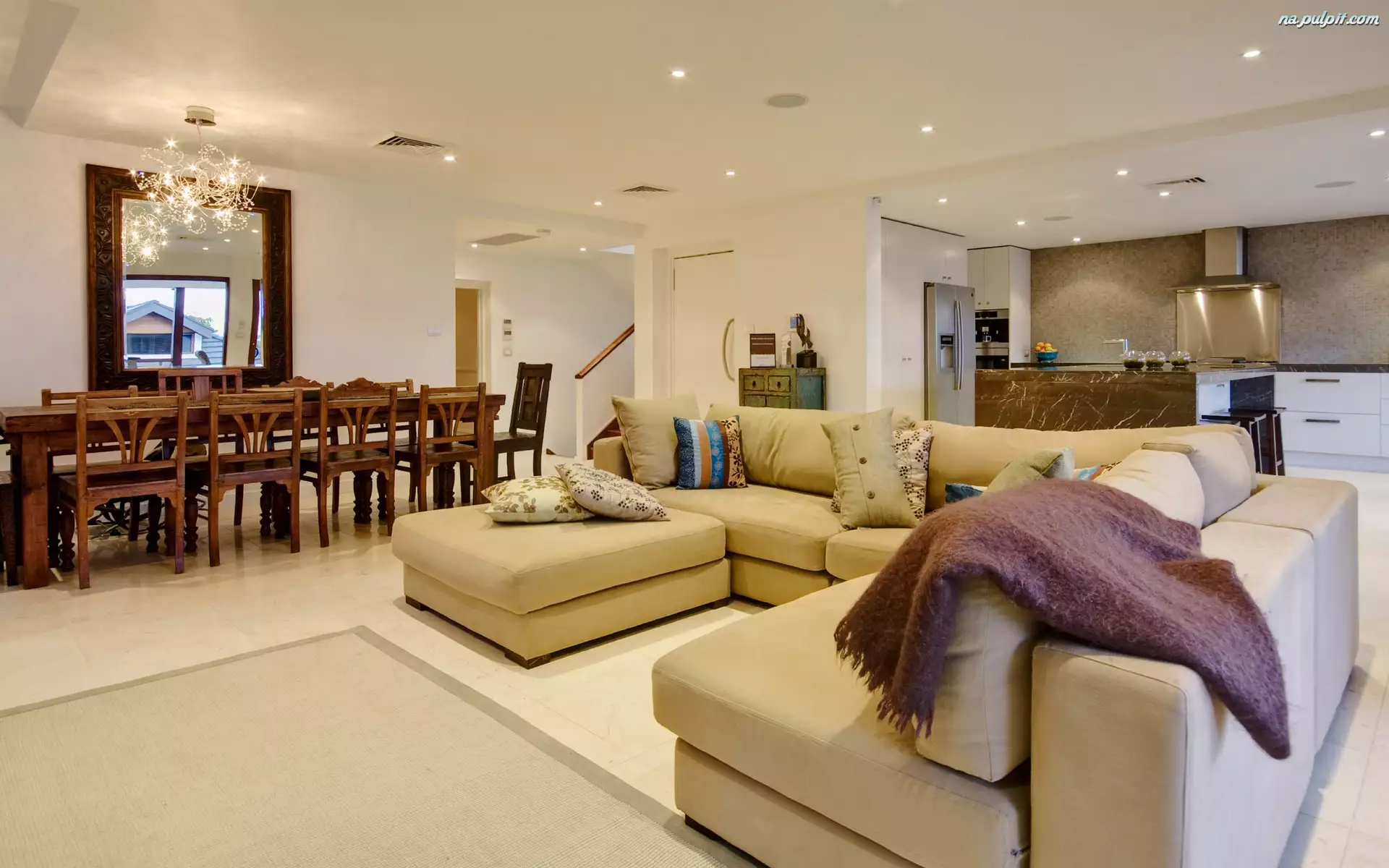 Rogówka, Koc, Stół, Poduszki, Krzesła, Lustro