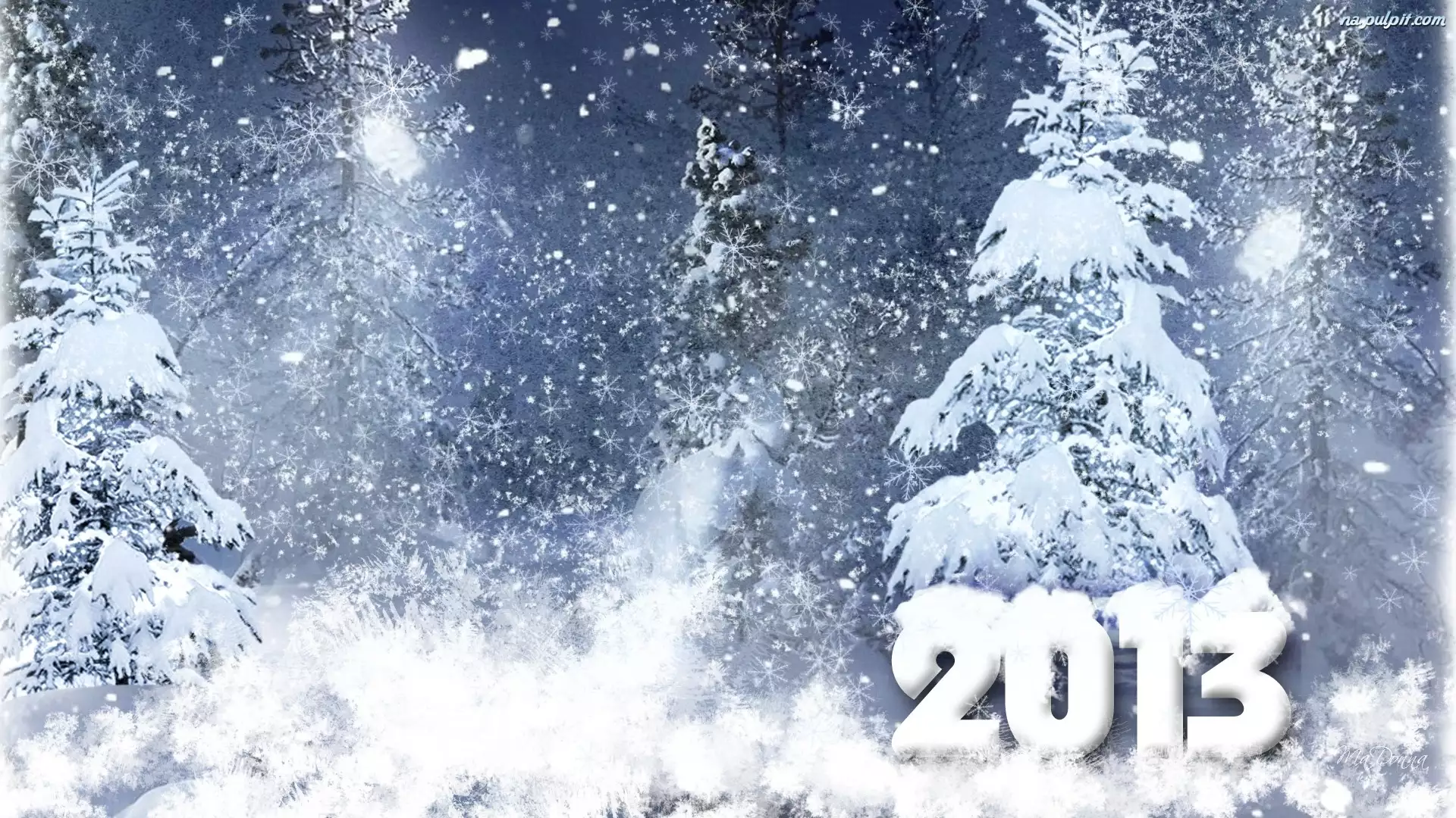 Rok, Drzewa, Zima, Śnieg, Nowy