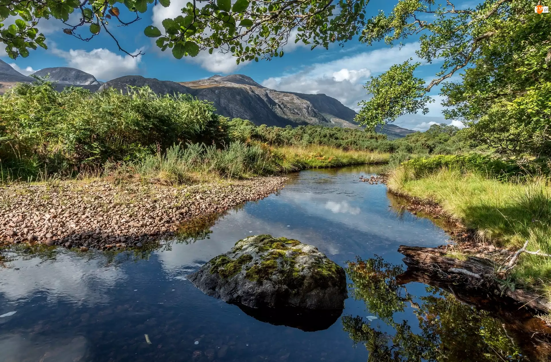 Roślinność, Góry, Drzewa, Rzeka, Kamień