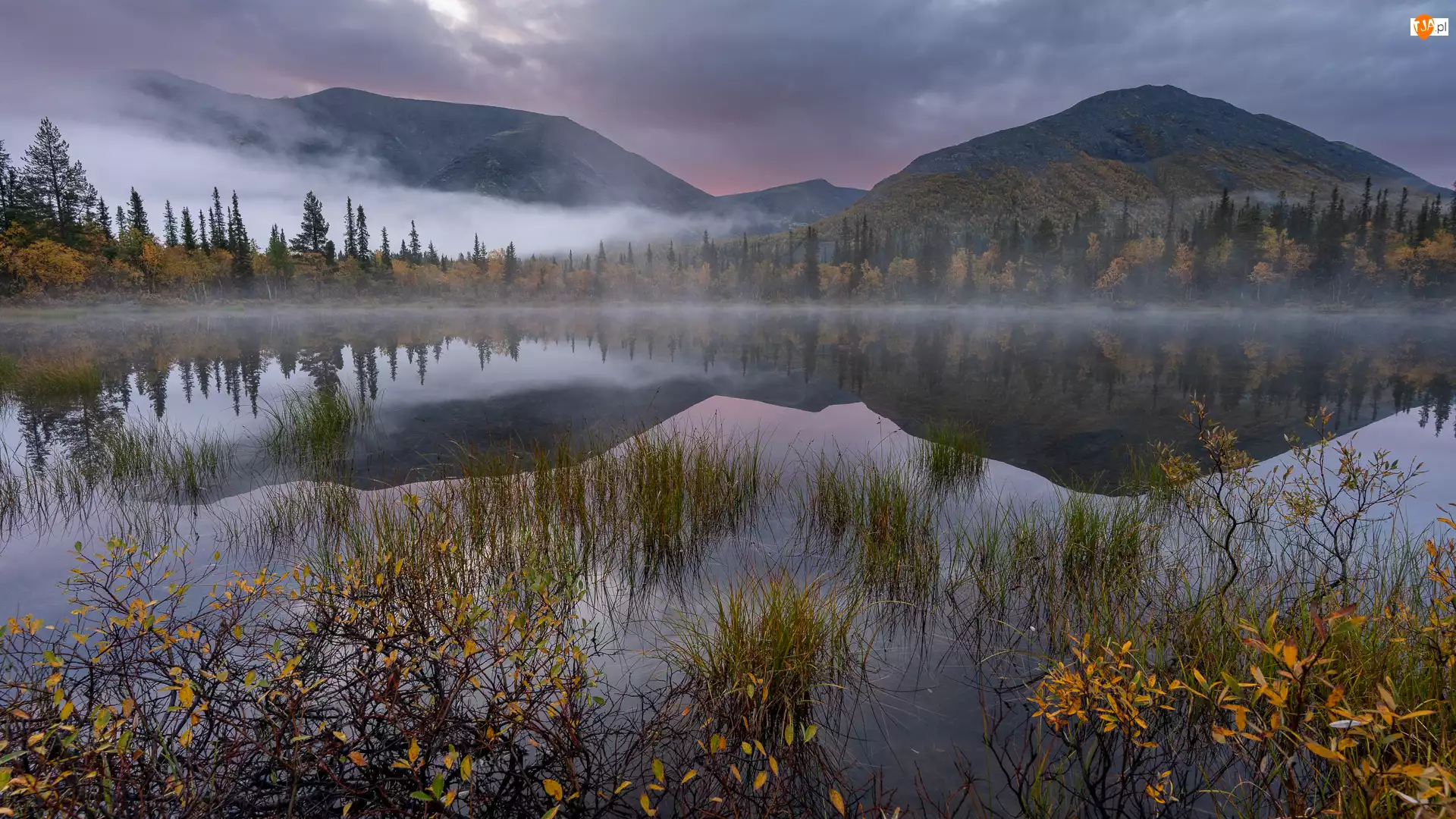 Roślinność, Góry, Szuwary, Jezioro, Mgła