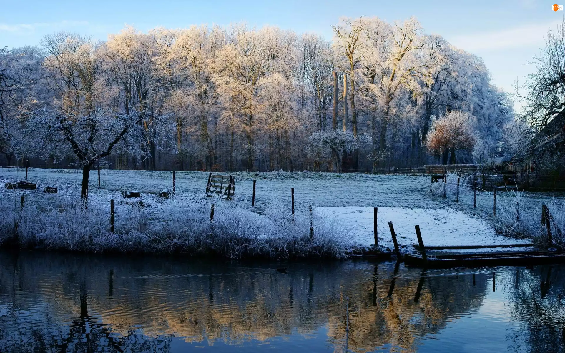 Roślinność, Jeziorem, Dom, Zima, Las, Nad, Ośn
