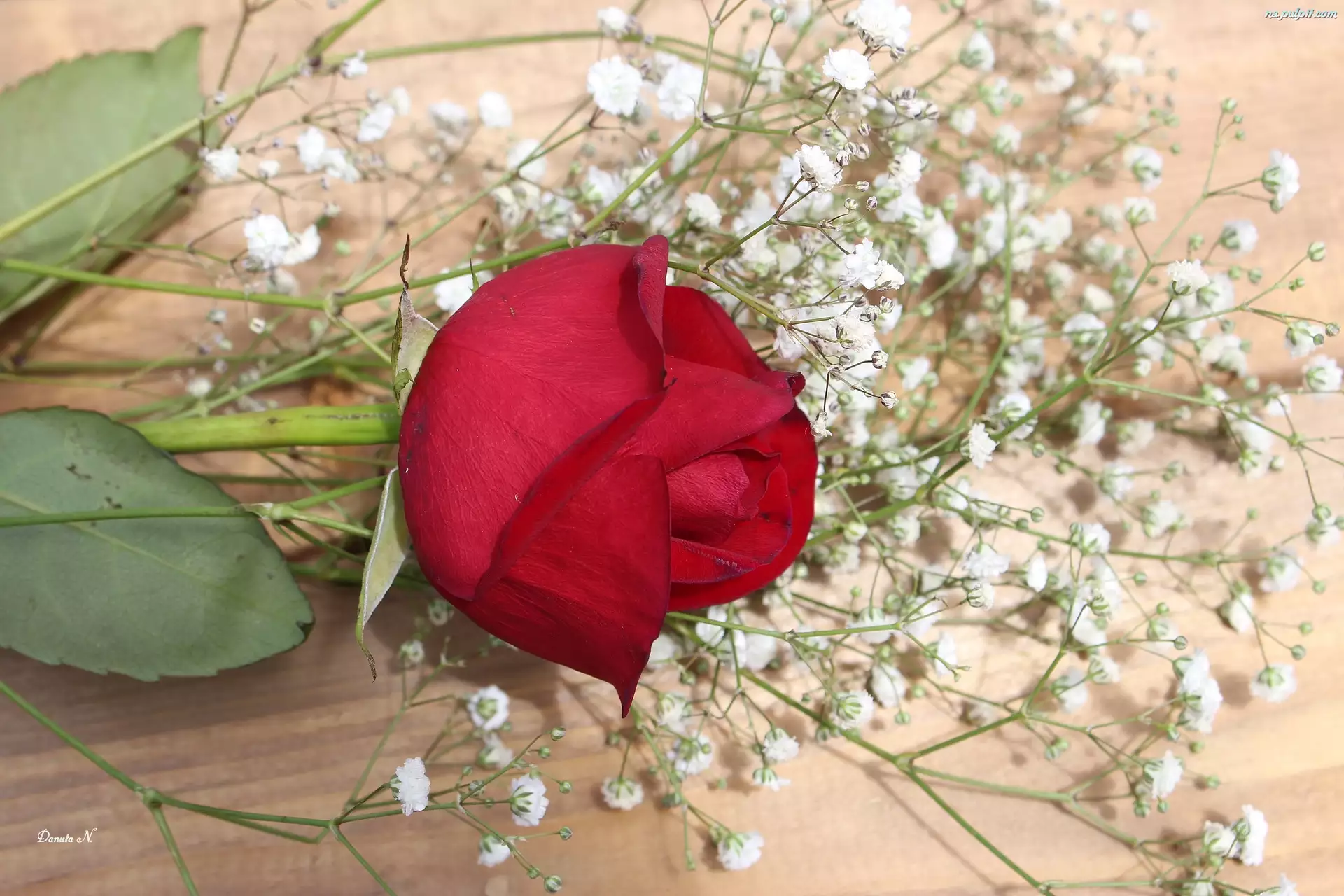 Róża, Gipsówka, Kwiat, Liście, Jedna, Czerwona