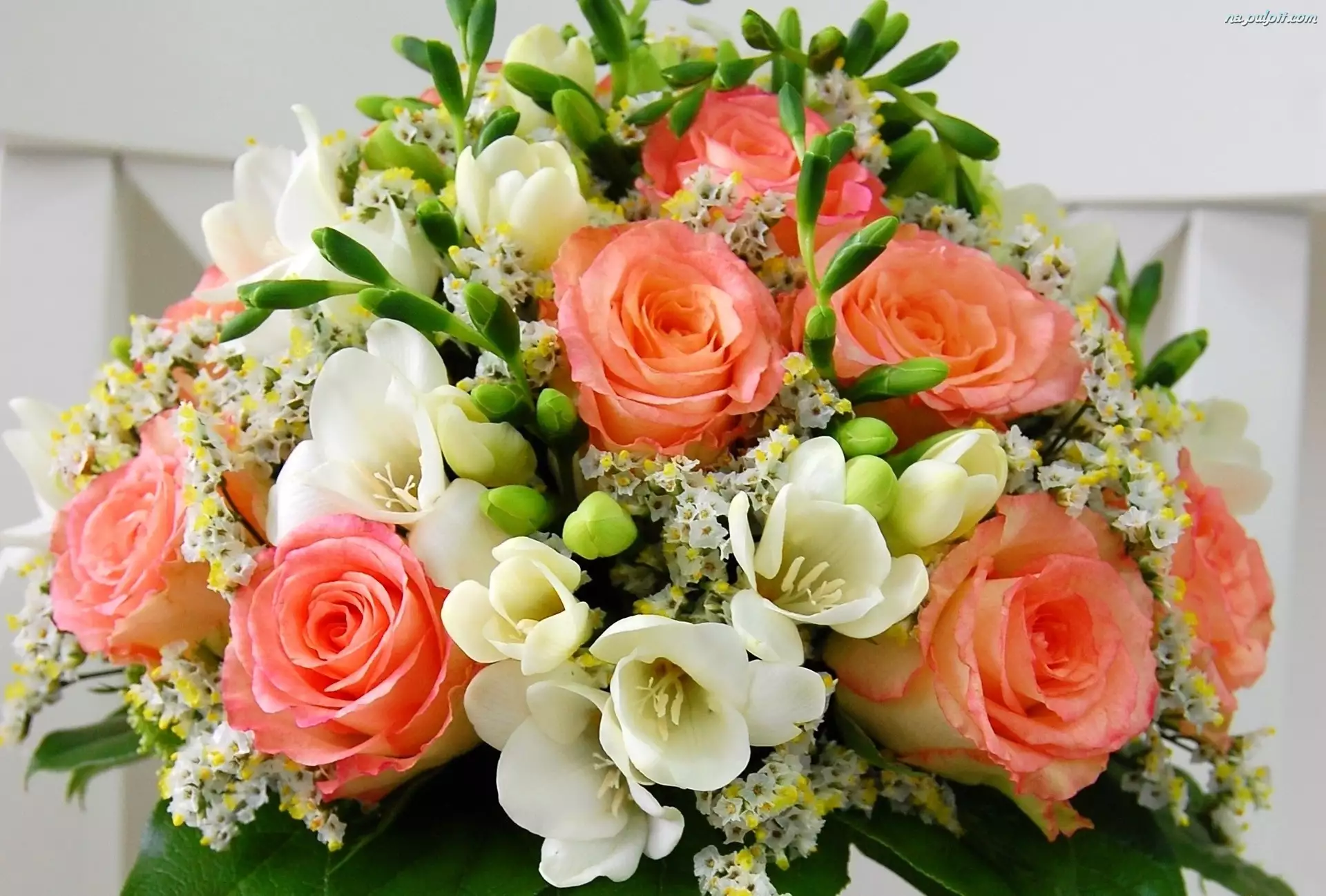 Róże, Bukiet, Kwiatów, Pięknych, Frezje