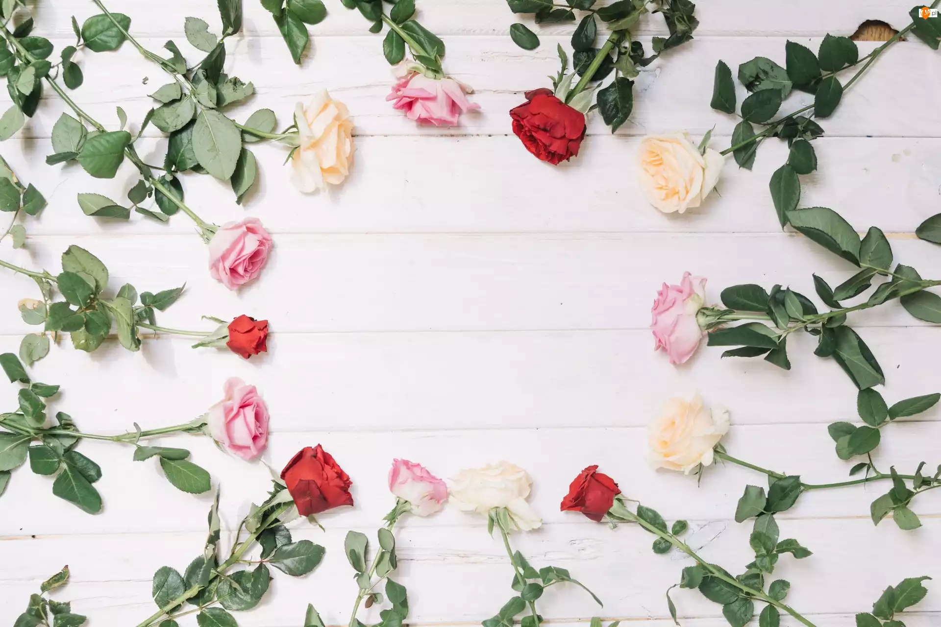 Róże, Deski, Kolorowe, Kwiaty, Białe