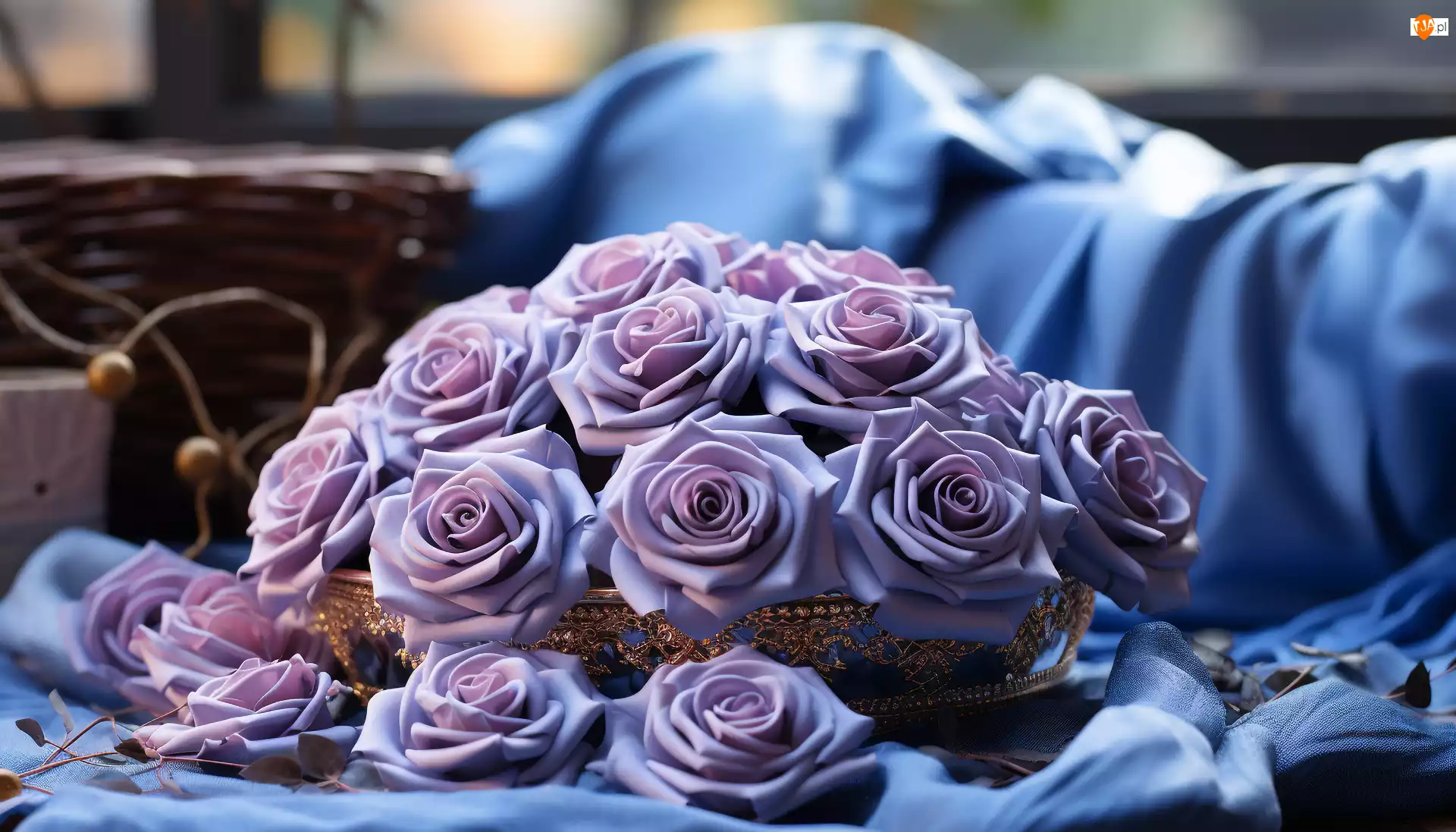 Róże, Fioletowe, Tkanina, Grafika, Niebieska, Kompozycja
