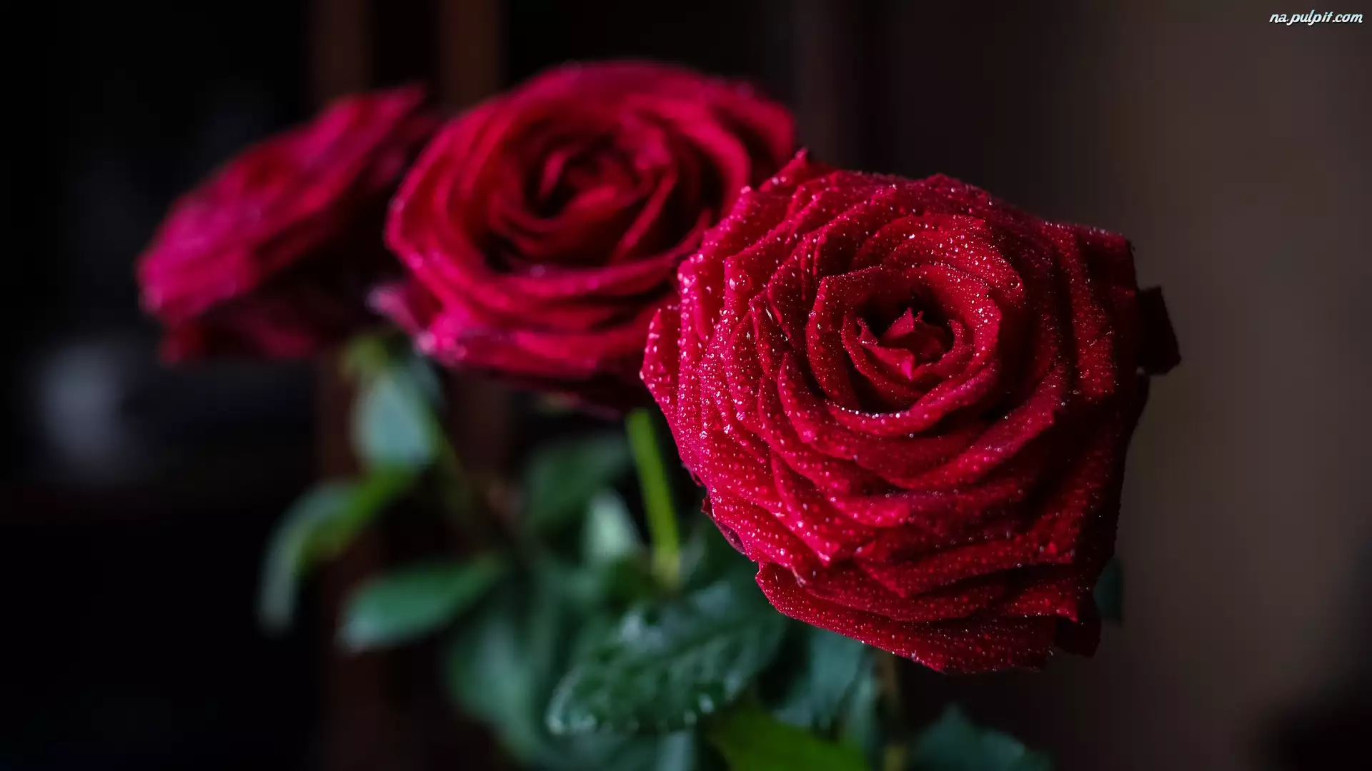 Róże, Krople, Trzy, Wody, Czerwone, Rosa