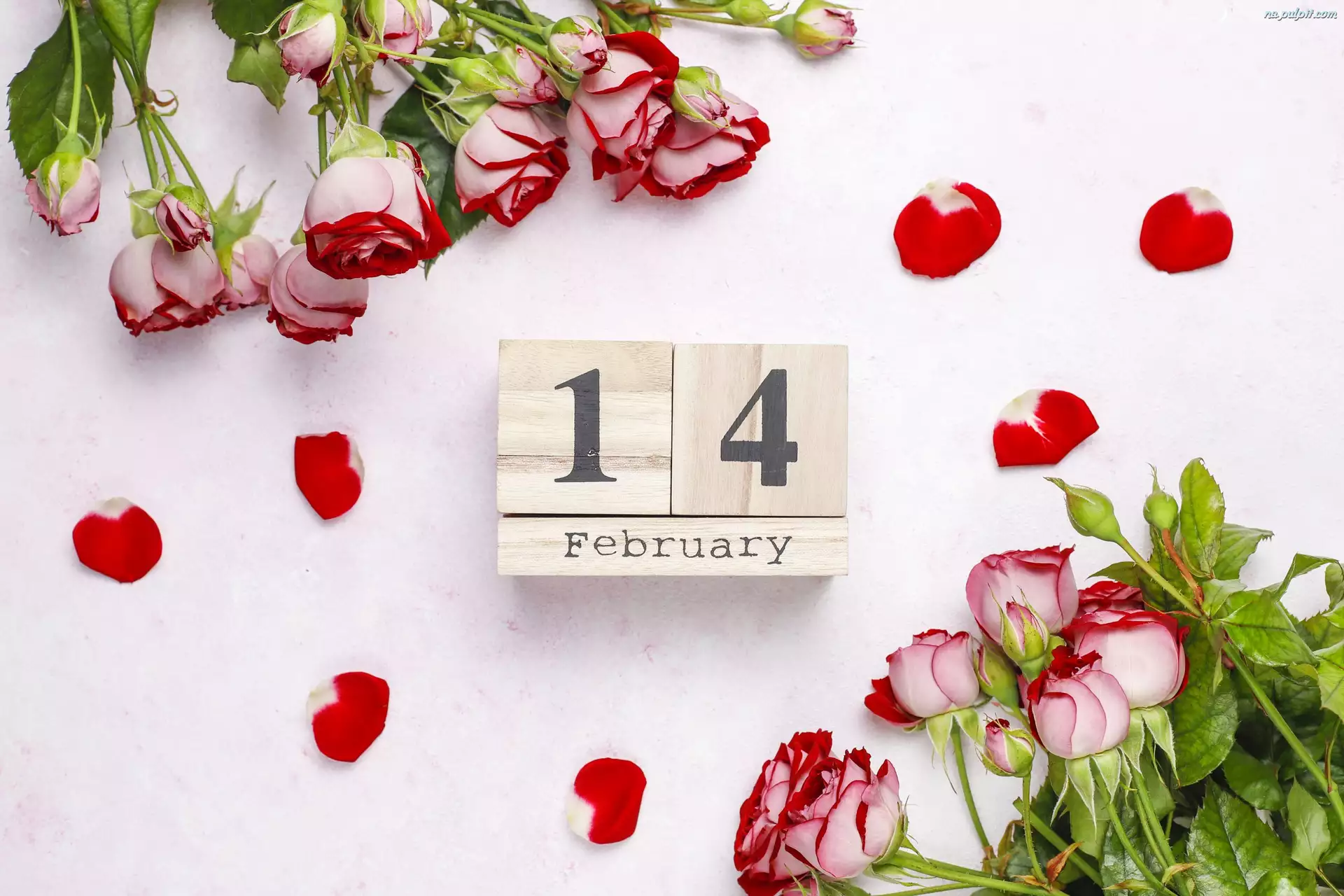 Róże, Kwiaty, Data, Walentynki, Klocki, 14 luty